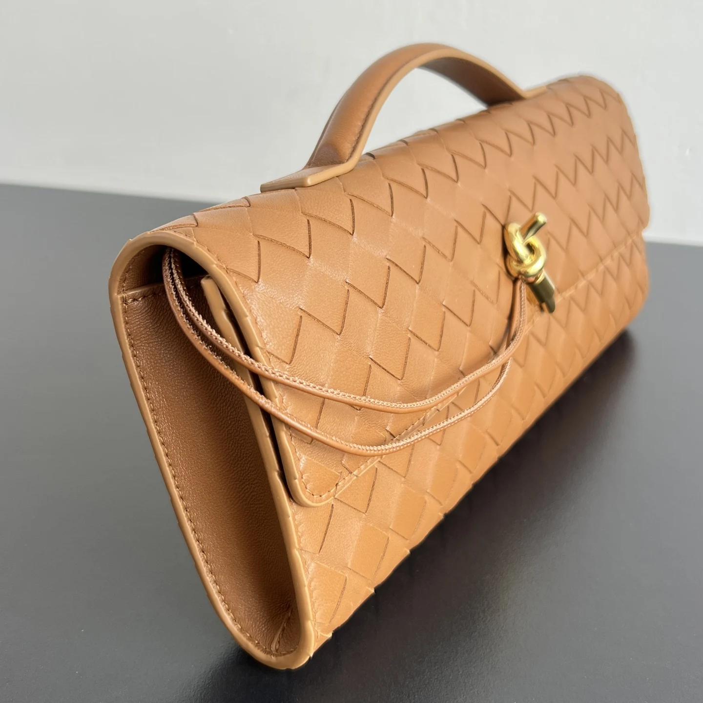 Bv Clutch Long Clutch 741511 with a handle. This clutch design embodies exquisite and sophisticated taste. Crafted from meticulously woven intreccio lambskin leather, it can be carried by hand, held, or worn under the arm. The metal rope knot embellishment exudes elegance and nobility. Featuring an interior zip compartment, it s a great companion for your daily life. Whether you re walking the red carpet or attending a gala, it will add a unique charm to your ensemble. Dimensions: 31x13x3.