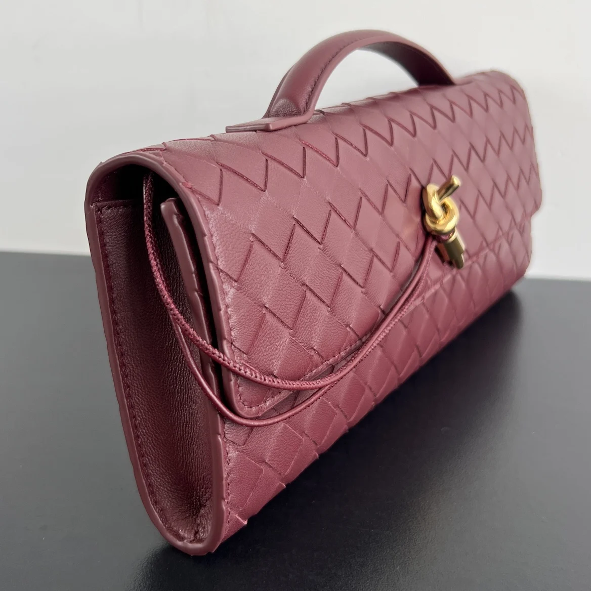 Bv Clutch Long Clutch 741511 with a handle. This clutch design embodies exquisite and sophisticated taste. Crafted from meticulously woven intreccio nappa leather, it can be carried by hand, held, or worn under the arm. The metal rope knot embellishment exudes elegance and nobility. Featuring an interior zip compartment, it s a great companion for your daily life. Whether you re walking the red carpet or attending a gala, it will add a unique charm to your look. Dimensions: 31x13x3.