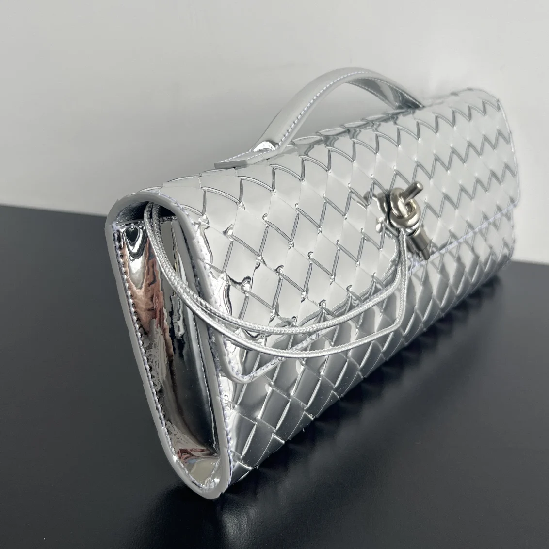 Bv Clutch Long Clutch 741511 with a handle. This clutch design embodies sophistication and refined taste. Crafted from exquisitely woven intreccio lambskin leather, it can be carried by hand, held, or worn under the arm. The metal rope knot embellishment exudes elegance and nobility. Featuring an interior zip compartment, it s a great companion for your daily life. Whether you re walking the red carpet or attending a gala, it will add a unique charm to your look. Dimensions: 31x13x3