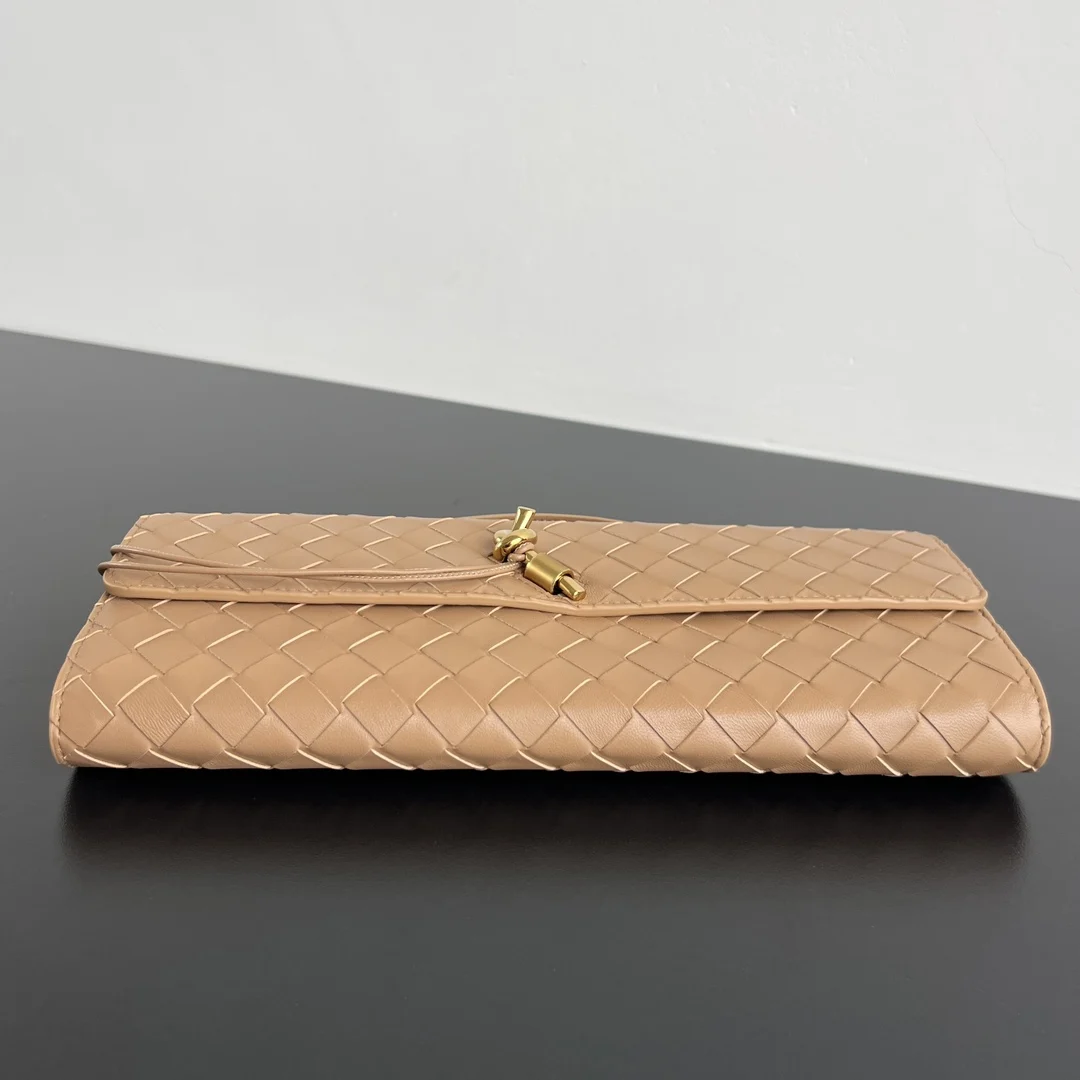 Bv Clutch Long Clutch 741511 with a handle. This clutch design embodies sophistication and refined taste. Crafted from exquisitely woven intreccio lambskin leather, it can be carried by hand, held, or worn under the arm. The metal rope knot embellishment exudes elegance and nobility. Featuring an interior zip compartment, it s a great companion for your daily life. Whether you re walking the red carpet or attending a gala, it will add a unique charm to your ensemble. Dimensions: 31x13x3.