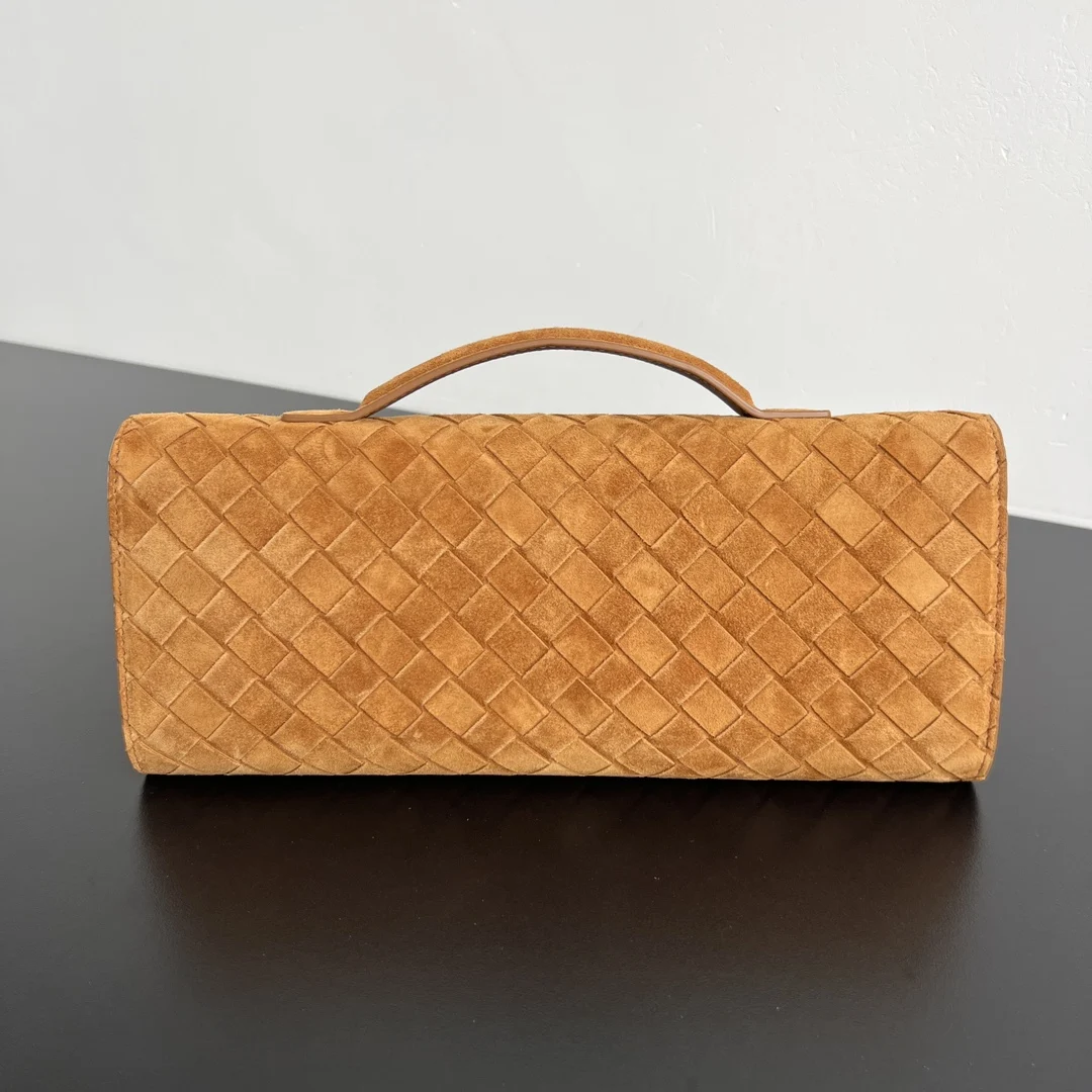 Bv Clutch Long Clutch 741511 with a handle. This clutch design embodies exquisite and sophisticated taste. Crafted from meticulously woven intreccio suede, it can be carried by hand, held by the handle, or tucked under the arm. The metal rope knot embellishment exudes elegance and nobility. Featuring an interior zip compartment, it is a great companion for your daily life. Whether you re walking the red carpet or attending a gala, it will add a unique charm to your ensemble. Dimensions: 31x13x3