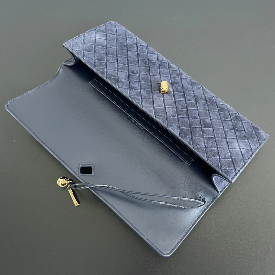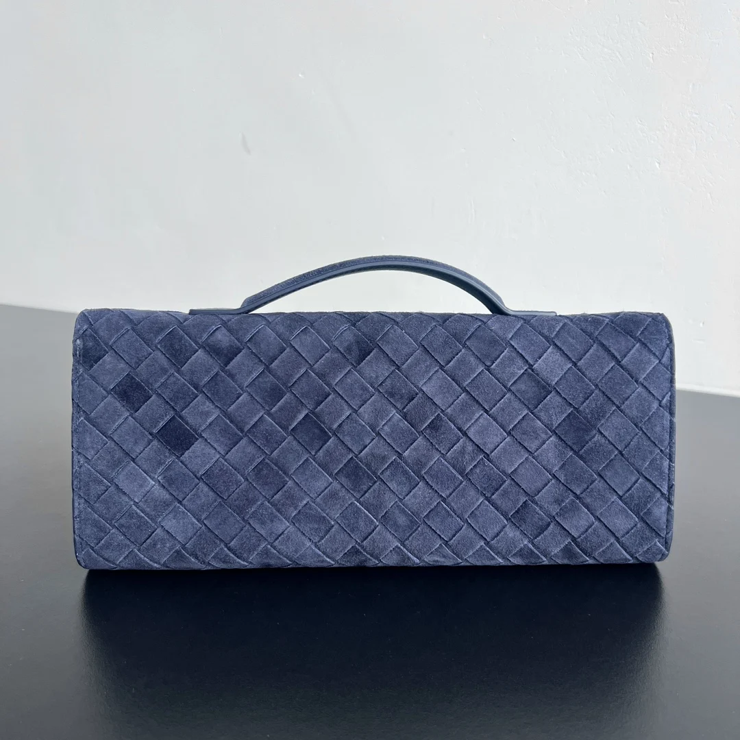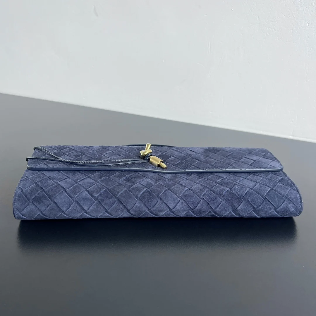 Bv Clutch Long Clutch 741511 features a handle, and its design embodies sophistication and refined taste. Crafted with exquisite intreccio woven suede, it can be carried by hand, held by the handle, or tucked under the arm. The metal rope knot embellishment exudes elegance and nobility. The interior features a zippered compartment, making it a great companion for your daily life. Whether you re walking the red carpet or attending a gala, it will add a unique charm to your ensemble. Dimensions: 31x13x3
