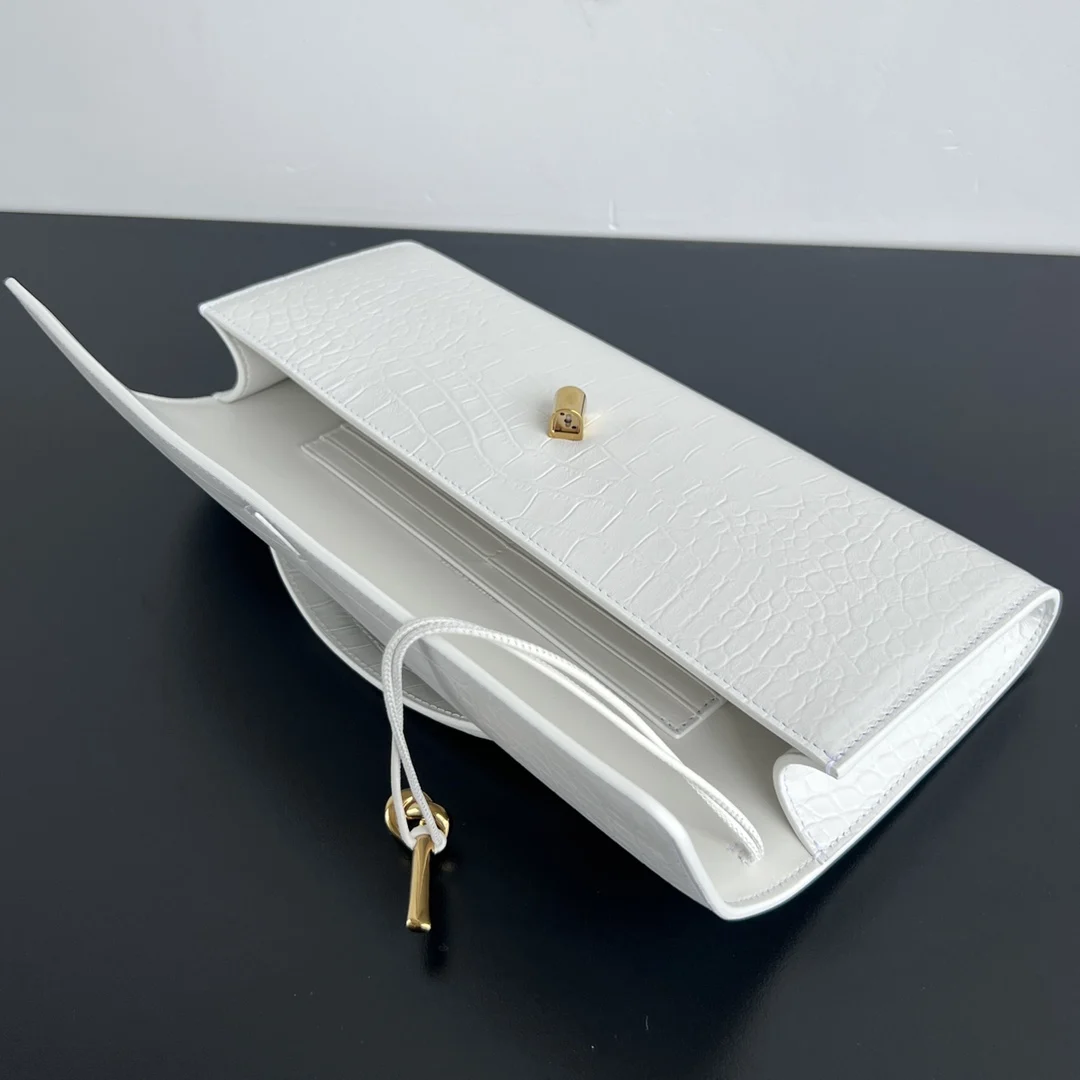Bv Crocodile-Embossed Clutch Long Wallet 741511 features a handle, with a design that embodies sophistication and refined taste. Crafted from exquisitely woven intreccio lambskin leather, it can be carried by hand, held, or worn under the arm. The metal rope knot embellishment exudes elegance and nobility. The interior features card slots and compartments, making it a perfect companion for your daily life. Whether you re walking the red carpet or attending a gala, it will add a unique charm to your ensemble. Dimensions: 31x13x3.