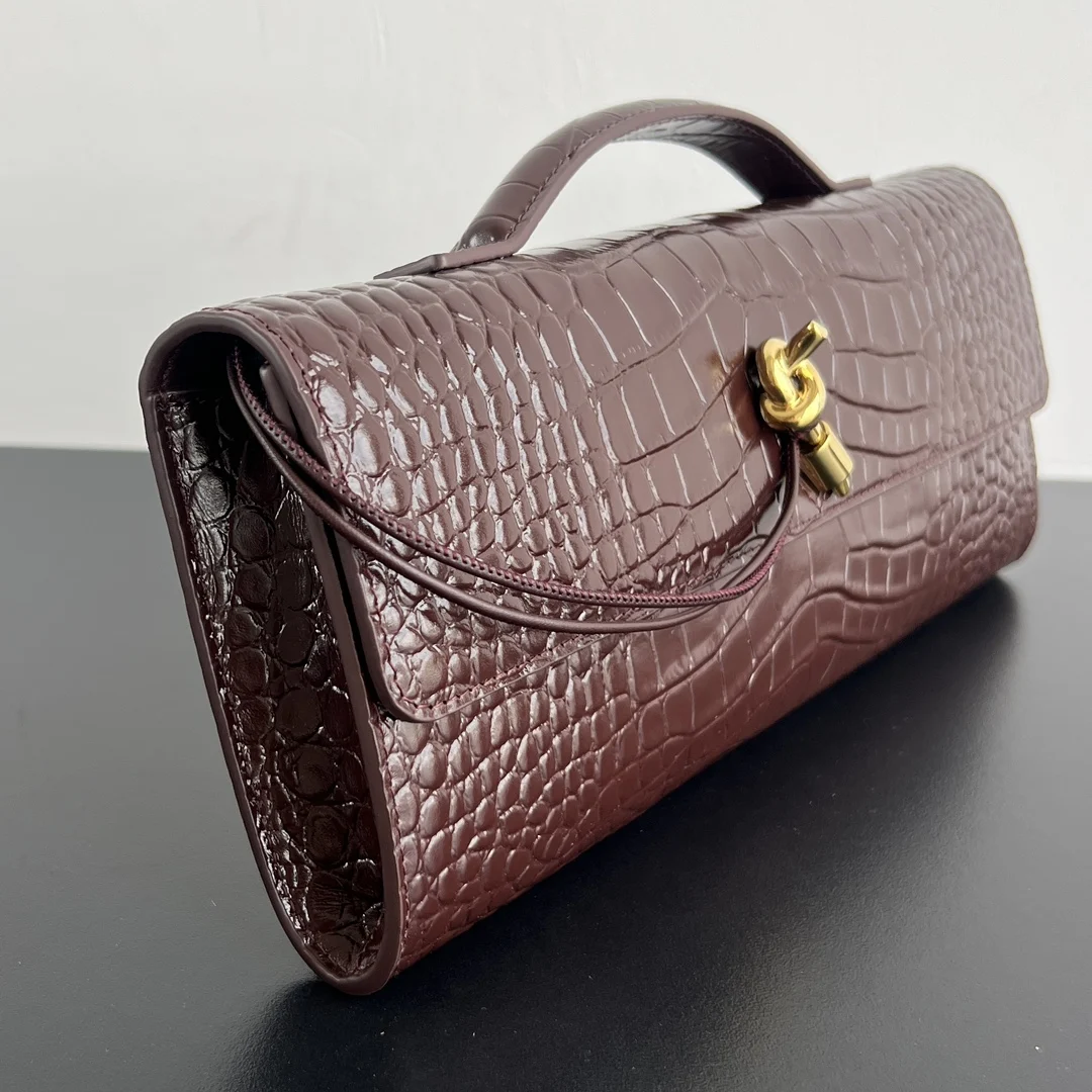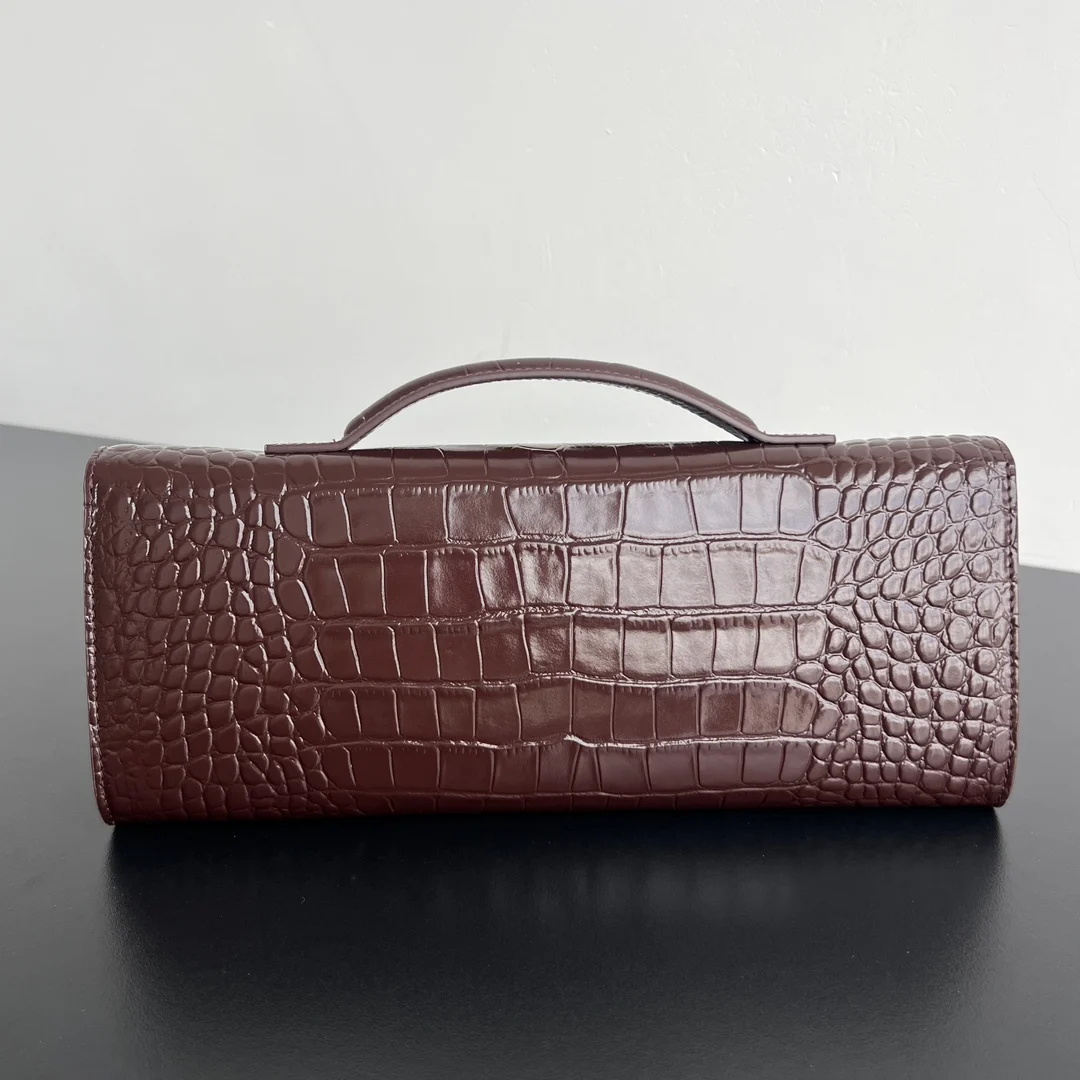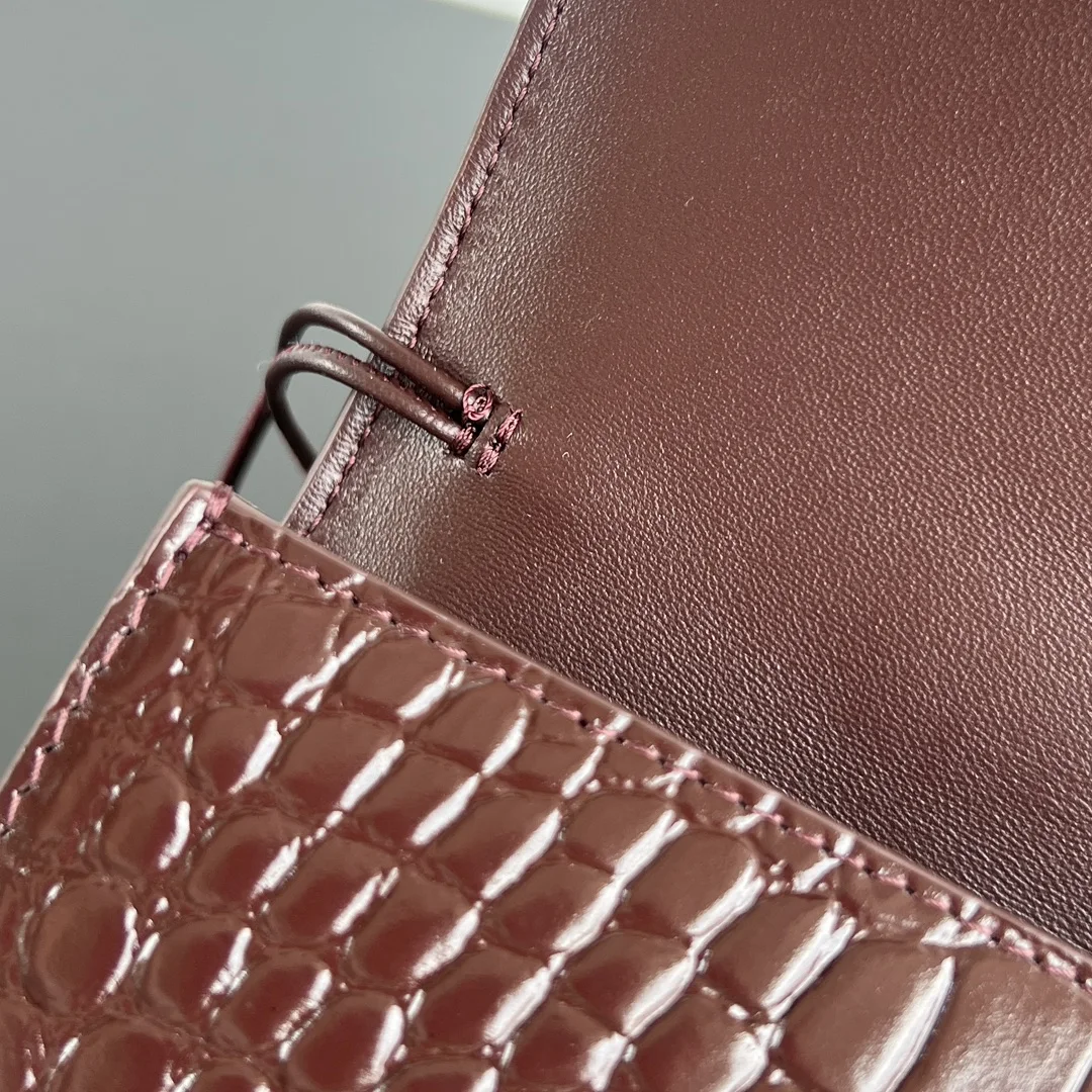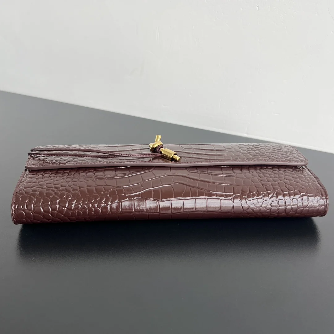 Bv Crocodile-Embossed Clutch Long Wallet 741511, featuring a handle, embodies refined and sophisticated taste. Crafted from exquisite intreccio crocodile-embossed lambskin, it can be carried by hand, held, or worn under the arm. The metal rope knot embellishment exudes elegance and nobility. The interior features card slots and compartments, making it a perfect companion for your daily life. Whether you re walking the red carpet or attending a gala, it will add a unique charm to your look. Dimensions: 31x13x3