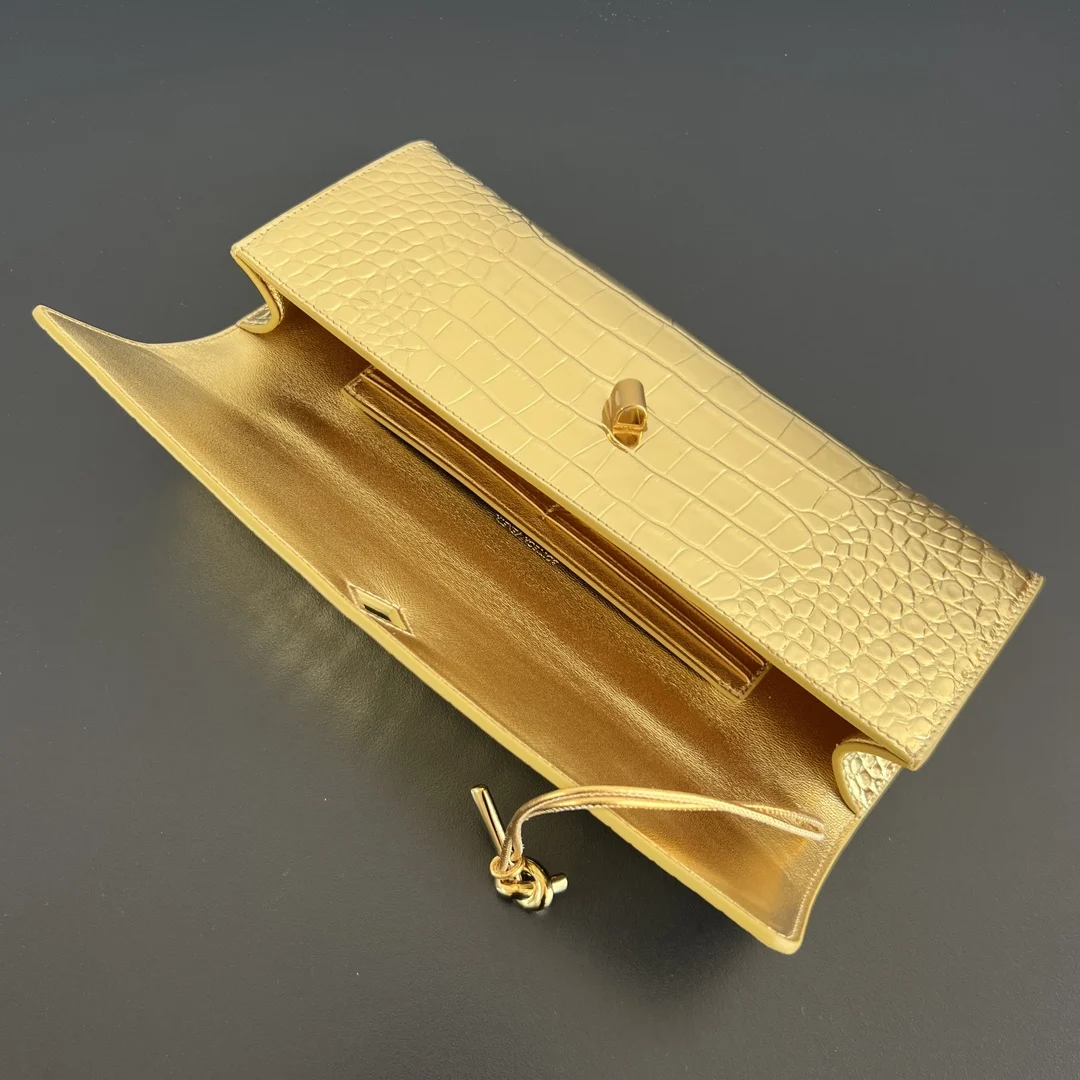 Bv Crocodile-Embossed Clutch Long Wallet 741511 features a handle, and its design embodies sophistication and refined taste. Crafted from exquisite intreccio crocodile-embossed lambskin, it can be carried by hand, held, or worn under the arm. The metal rope knot embellishment exudes elegance and nobility. The interior features card slots and compartments, making it a great companion for your daily life. Whether you re walking the red carpet or attending a gala, it will add a unique charm to your look. Dimensions: 31x13x3
