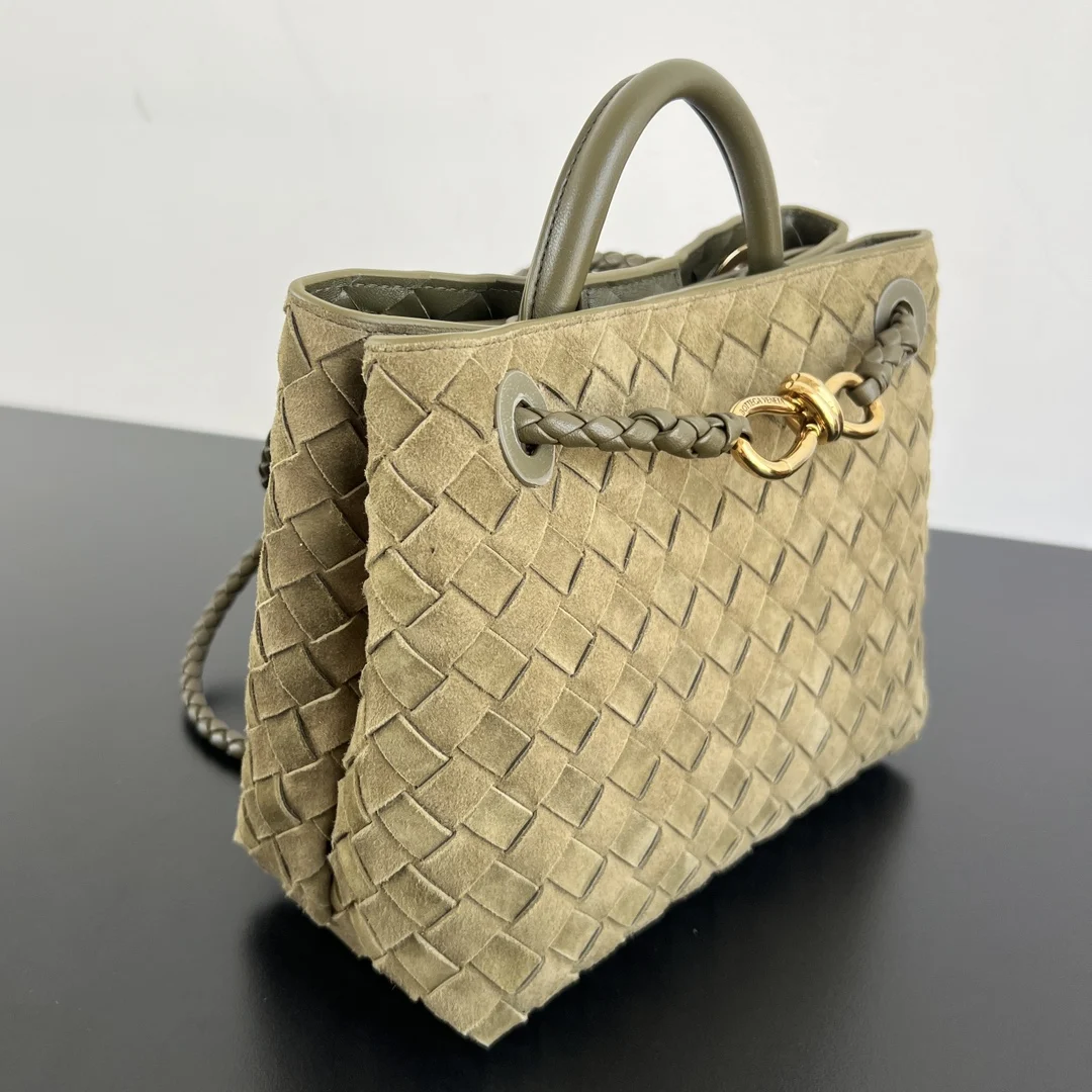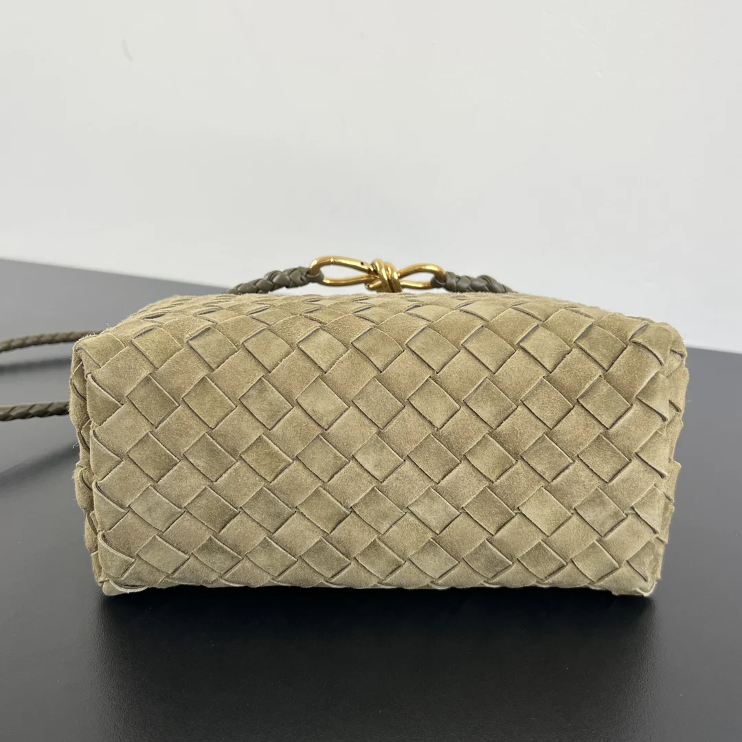 BV s new Suede Andiamo 743568 The warm suede Andiamo is here for autumn and winter Made with goat suede calfskin, the texture is softer and more delicate, giving it a very full and luxurious feel! The sliding metal knot on the shoulder strap can be adjusted at will, allowing for multiple carrying options: shoulder bag, handbag, or crossbody. The bag has a large capacity, making it suitable for commuting, daily use, and travel. This bag comes in small, medium, and large sizes, so there s sure to be one that s perfect for you. Take me away! Dimensions: 25x22x10.5