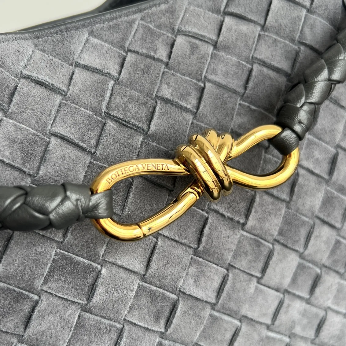 BV New Season Suede Andiamo 743572 The warm suede Andiamo is here for autumn and winter! Made with cashmere calf suede, the texture is softer and more delicate, giving it a very full and luxurious feel overall! The sliding metal knot on the shoulder strap can be adjusted at will, allowing for multiple carrying options: shoulder bag, handbag, or crossbody. The bag has a large capacity, making it suitable for commuting, daily use, and travel. This bag comes in small, medium, and large sizes, so there s sure to be one that s perfect for you. Take me home! Size: 32x25x11