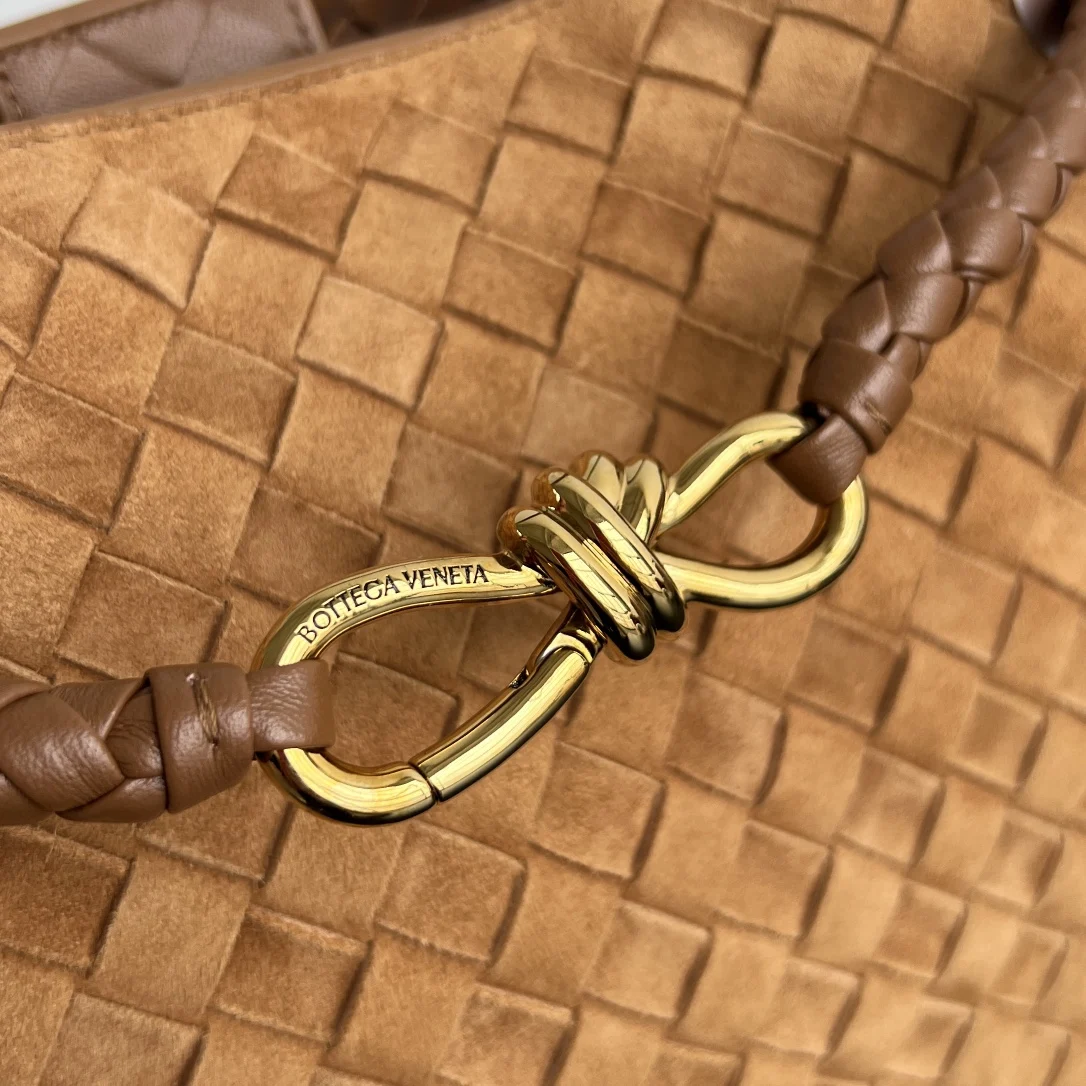 BV s new Deerskin Andiamo 743572 The warm deerskin suede Andiamo is here for autumn and winter Made with cashmere calf deerskin, the touch is softer and more delicate, and the overall look is very full and high-end! The sliding metal knot on the shoulder strap can be adjusted at will, with multiple carrying options: single shoulder, hand-held, or crossbody. The bag has a large capacity, making it suitable for commuting, daily use, and travel. This bag comes in small, medium, and large sizes, so there is sure to be one that suits you. Take me away! Size: 32x25x11