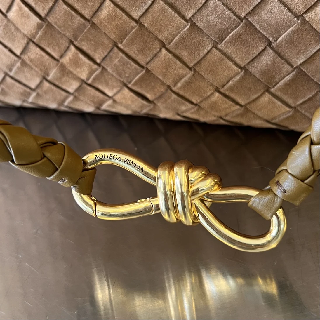 Bottega Veneta Oxdized Andiamo Bag. A celebrity favorite 743575. The classic full leather weave with a gold knot buckle is both sophisticated and chic . The entire bag is made of Nappa lambskin, which is comfortable, soft, and dynamic. The sliding metal knot buckle allows you to adjust the shoulder strap for various carrying options: shoulder bag, handbag, or crossbody. The bag has a large capacity, making it suitable for commuting, daily use, and travel. This bag is available in small, medium, and large sizes. There is sure to be one that suits you. Take me away Dimensions: 45*22*34
