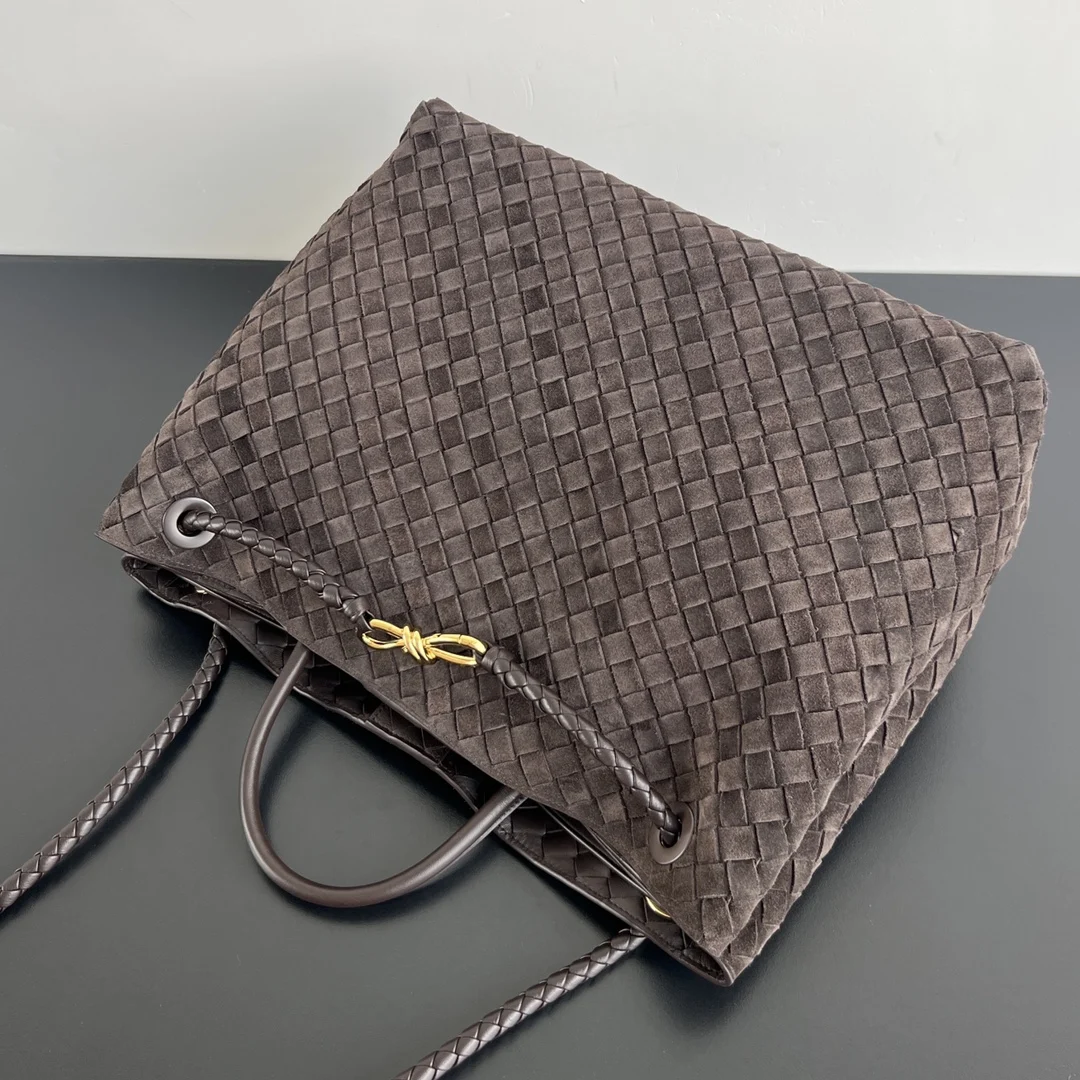 BV s new Deerskin Andiamo 743575 is here! This autumn winter version features warm deerskin, crafted with cashmere calfskin and deerskin for an even softer and more delicate touch, with an overall full and luxurious feel! The sliding metal knot on the shoulder strap allows for easy adjustments, offering multiple carrying options: single shoulder, hand-carry, or crossbody. The bag has a large capacity, making it suitable for commuting, daily use, and travel. Available in small, medium, and large sizes, there s sure to be one that s perfect for you. Take me home! Dimensions: 45x22x34