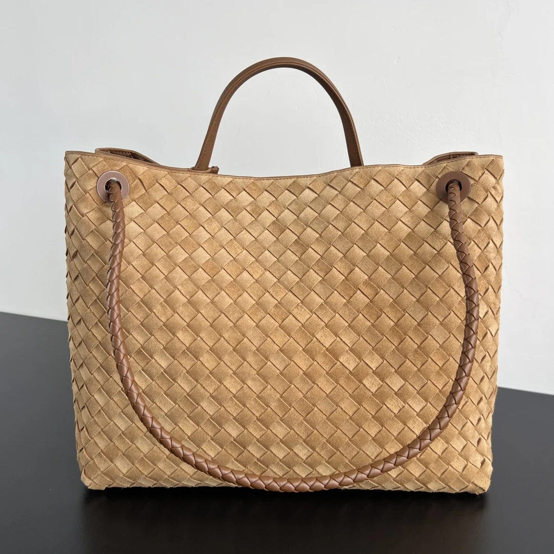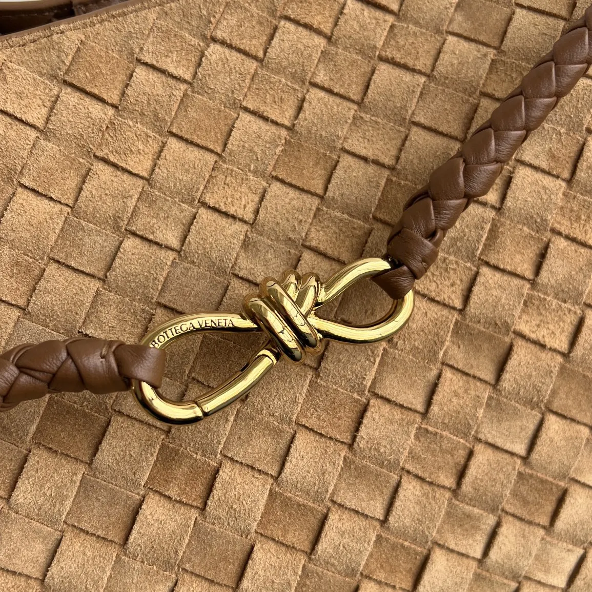 BV s new Suede Andiamo 743575 is here! The warm suede Andiamo for autumn and winter is crafted from goat suede calfskin, offering a softer and more delicate touch, with an overall full and luxurious feel! The sliding metal knot on the shoulder strap can be adjusted freely, allowing for various carrying options such as shoulder bag, handbag, or crossbody. The bag offers ample capacity, making it suitable for commuting, daily use, and travel. This bag is available in small, medium, and large sizes, so there s sure to be one that s perfect for you. Take me home! Size: 45x22x34