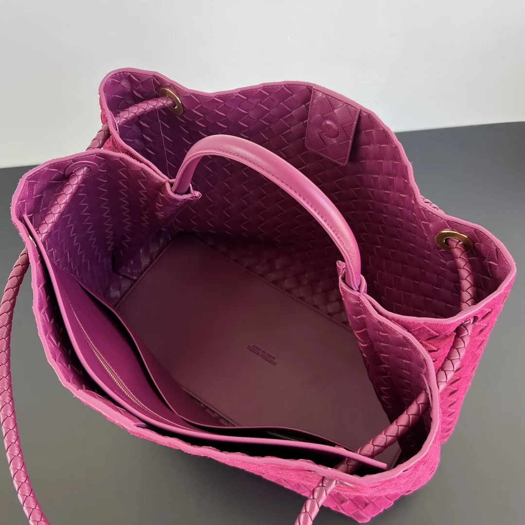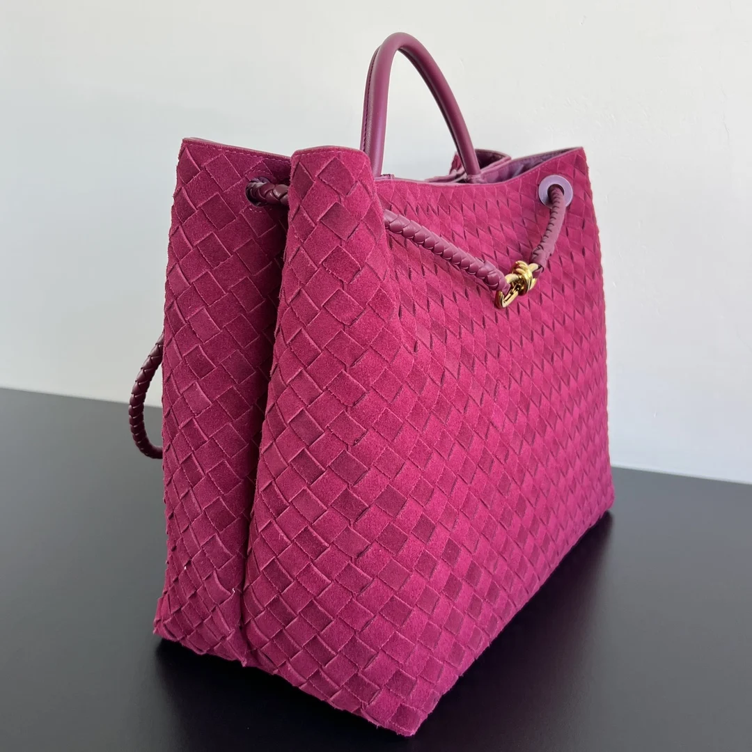 BV s new Deerskin Andiamo 743575 is here! The warm deerskin suede Andiamo for autumn and winter is made of cashmere calf deerskin, making it softer and more delicate to the touch, with an overall full and luxurious feel! The sliding metal knot on the shoulder strap can be adjusted at will, allowing for various carrying options such as shoulder bag, handbag, or crossbody bag. The bag has a large capacity, making it suitable for commuting, daily use, and travel. This bag is available in small, medium, and large sizes, so there is sure to be one that suits you. Take me away! Size: 45x22x34