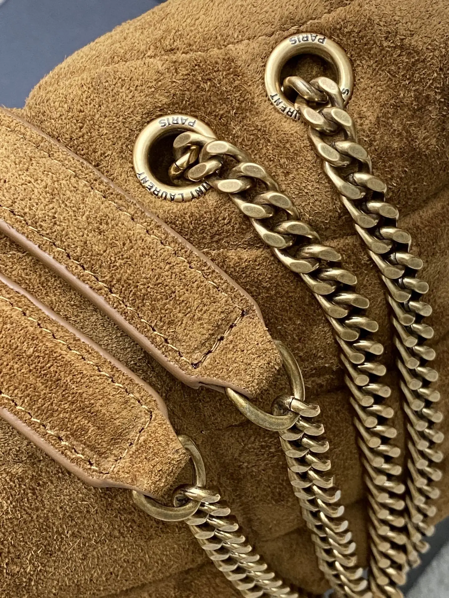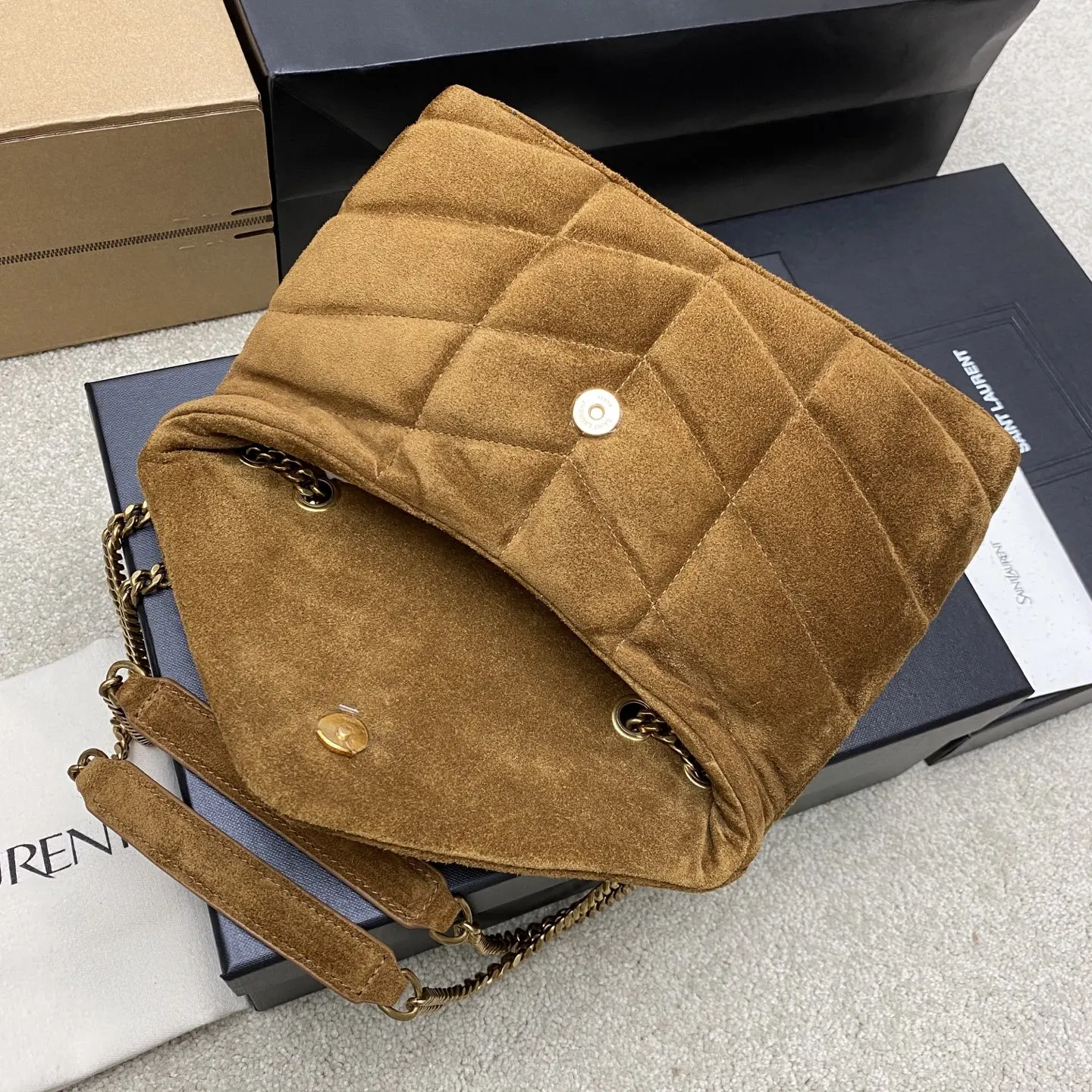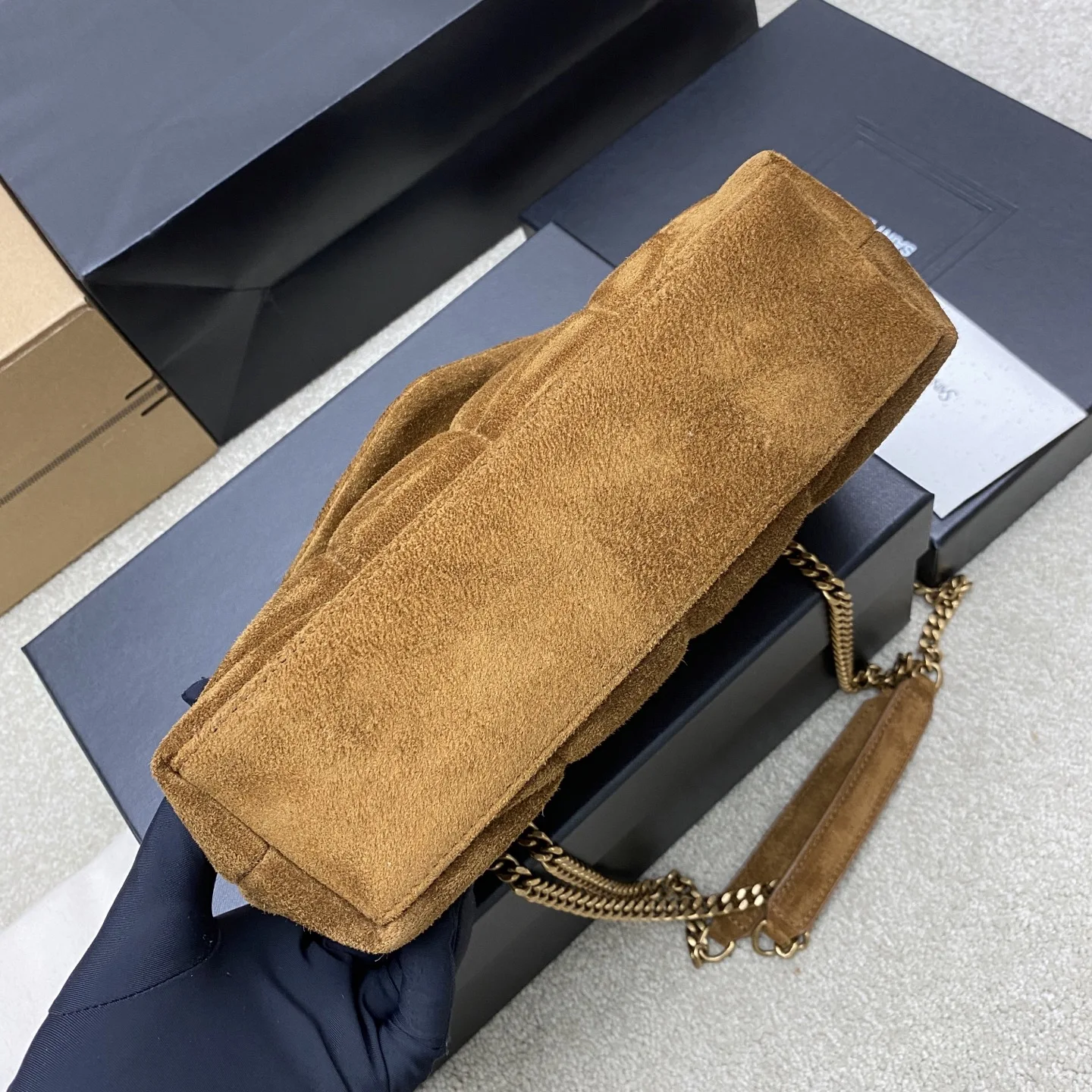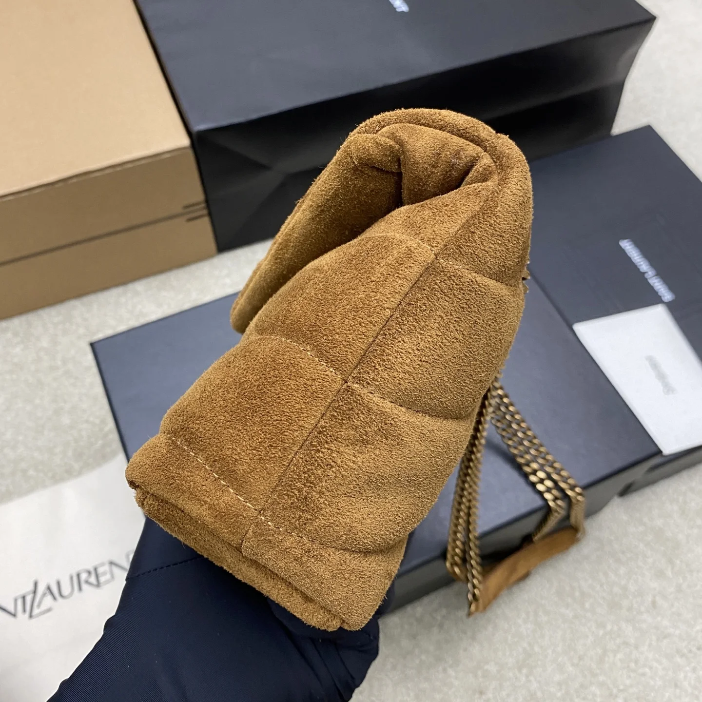 Matte Brown/Antique Gold Loulou Puffer LOULOU PUFFER New mini double chain quilted frosted suede, the latest mini size of the super popular style in stores! Made of original Z leather, it feels soft and delicate. It s as cute as a marshmallow when you take it out! The bag has a zipper pocket inside for mobile phones and valuables, and a card slot for cards. There are no extra inner pockets. Although small, it is fully functional and can be used as you wish.