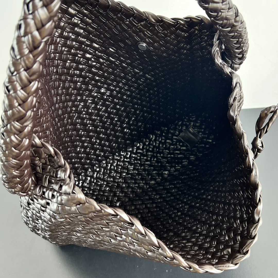 BV s new Tosca 765373: The latest addition to the most exquisite Tosca collection . Its emphasis on craftsmanship is evident, exuding luxury at first glance. Once you own this Tosca, you ll understand its value. The intricate woven design and the one-piece triangular shape of the bag, combined with the single handle design and the simple yet sophisticated silver metal sphere embellishments, make it stand out. The bag is lightweight and comfortable, with heavy-duty materials and a large capacity, making it both practical and captivating. Dimensions: 45*40*10.