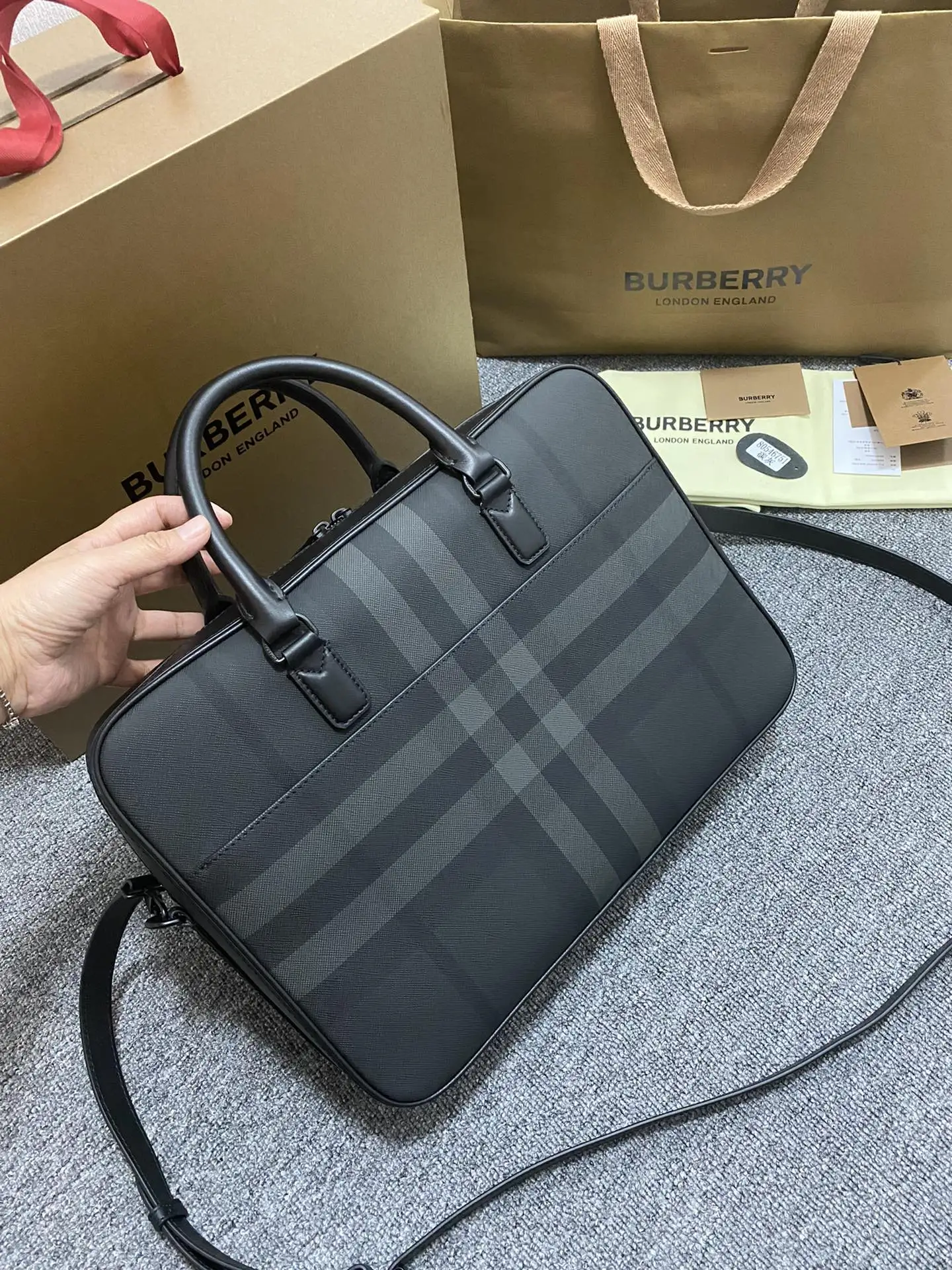 The latest briefcase, crafted from check and Italian-tanned leather, is accented with the brand s logo. It can be carried by the handle or worn on the shoulder with the detachable ..