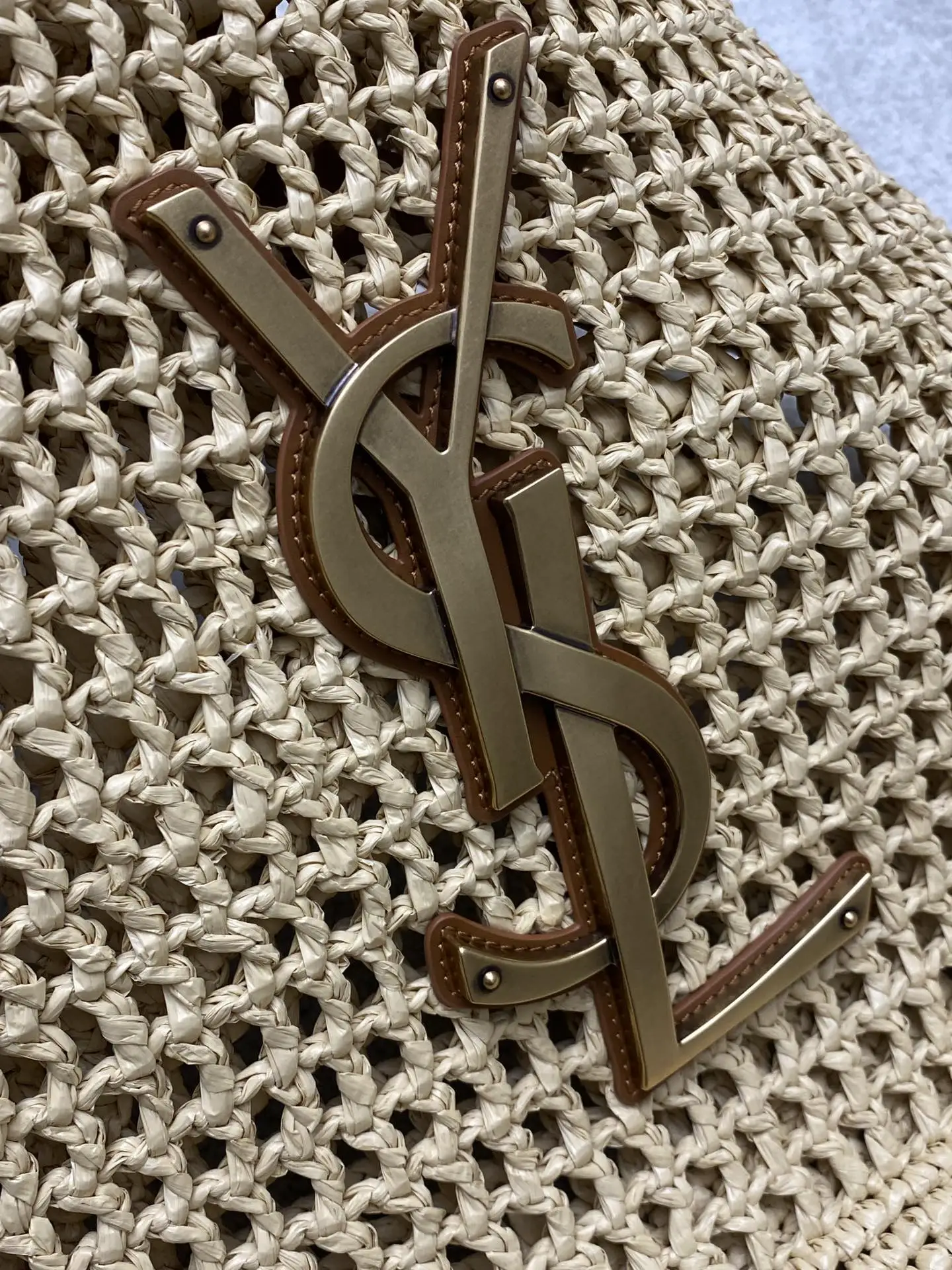SAINT LAURENT 772191 Woven Raffia Shopping Bag Tote Bag