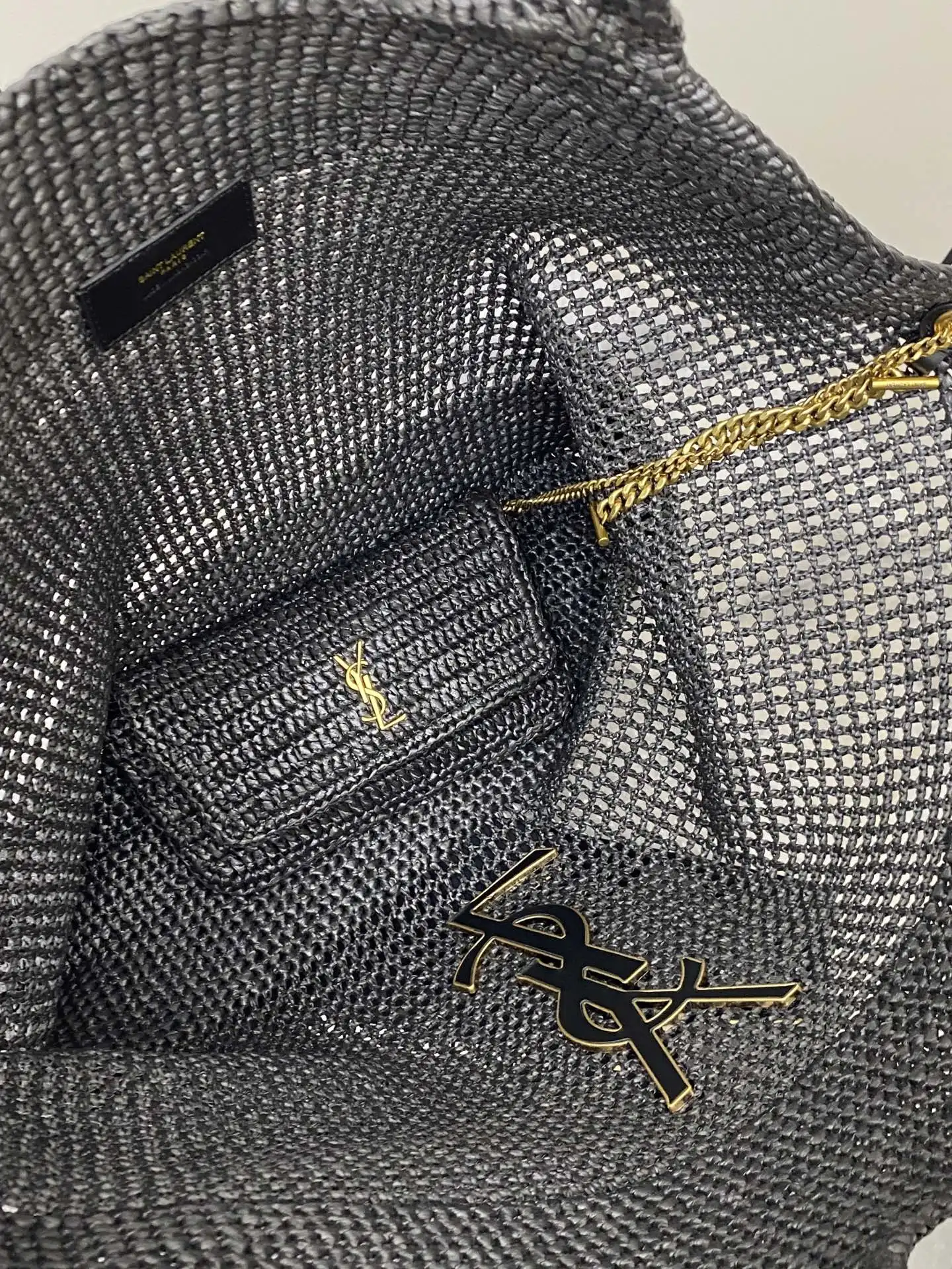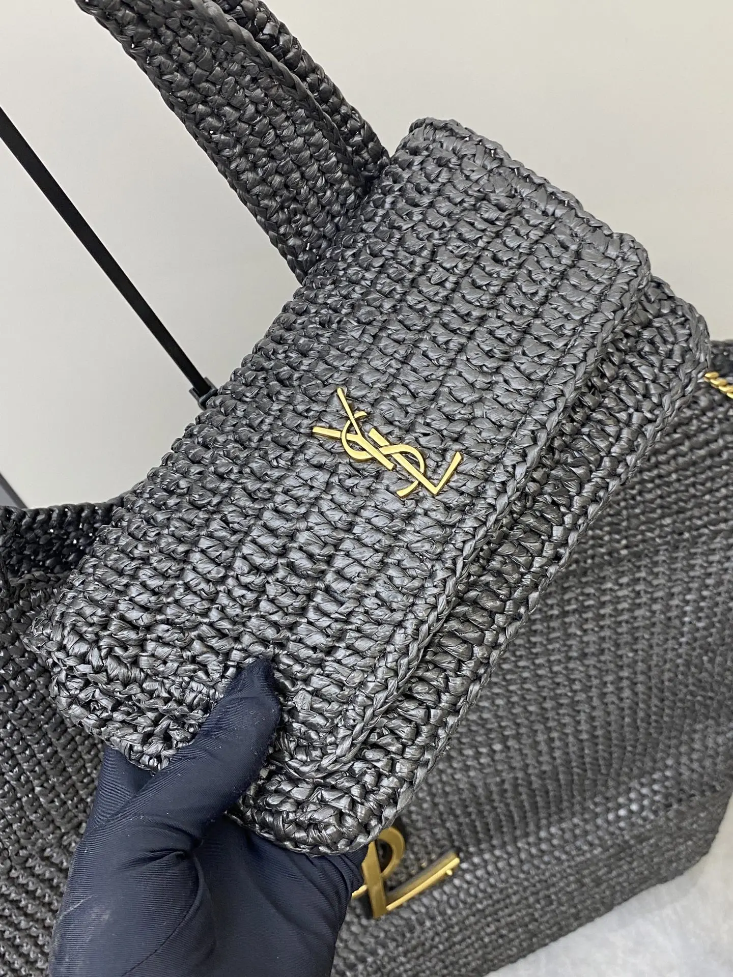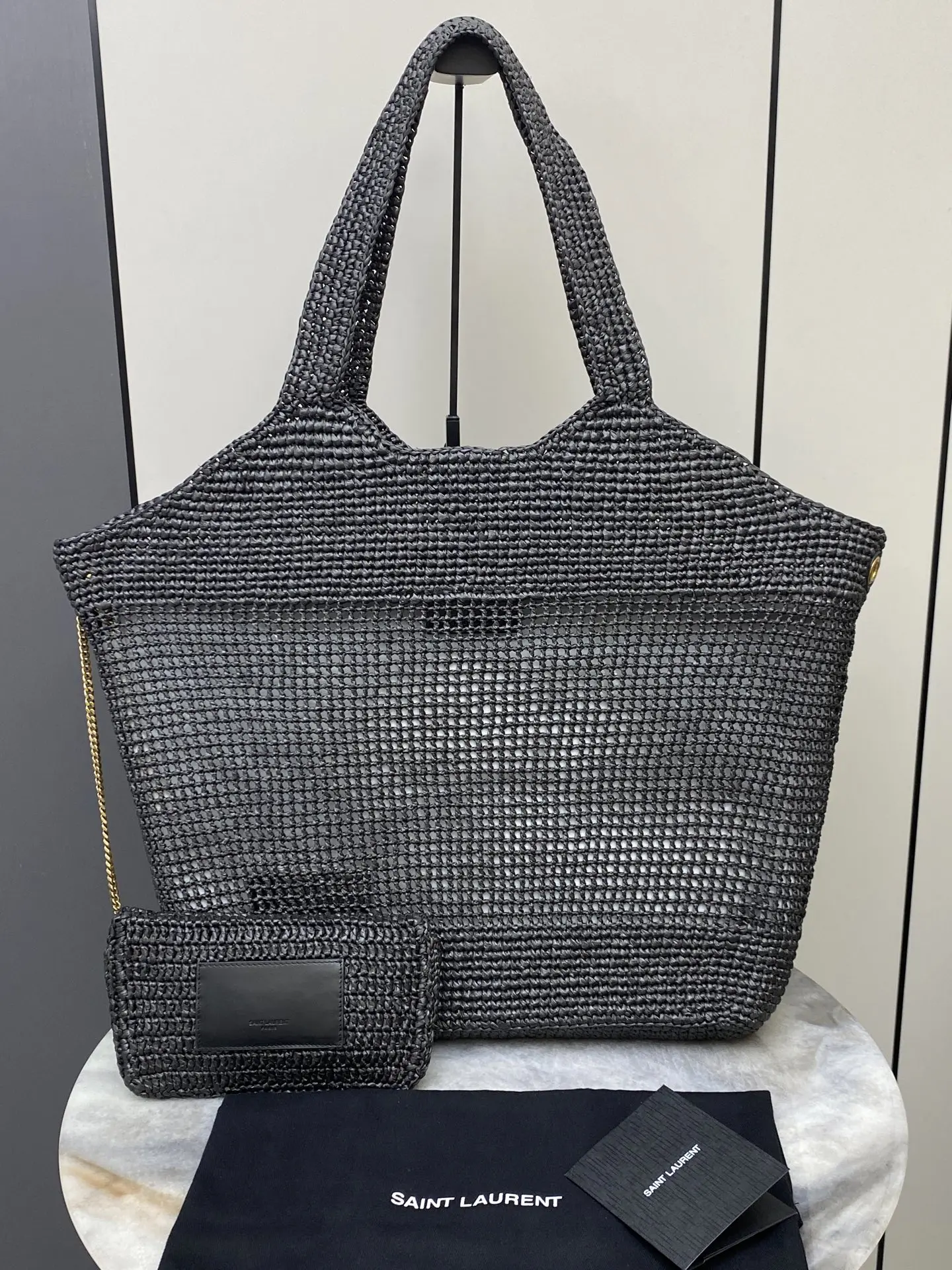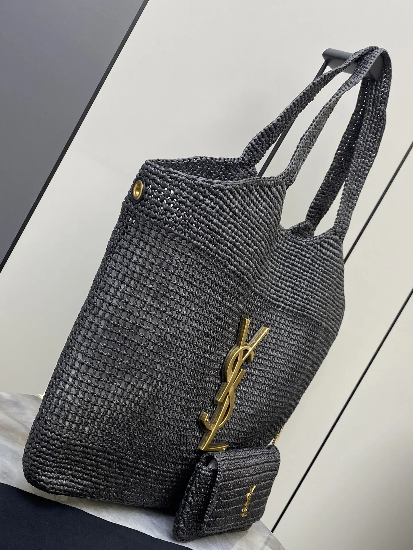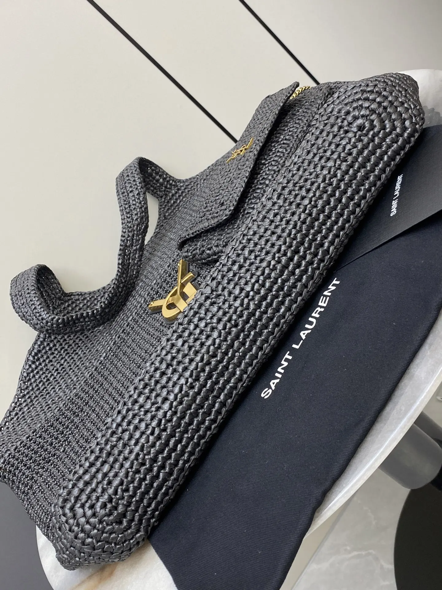 SAINT LAURENT 772191 Woven Raffia Shopping Bag Tote Bag
