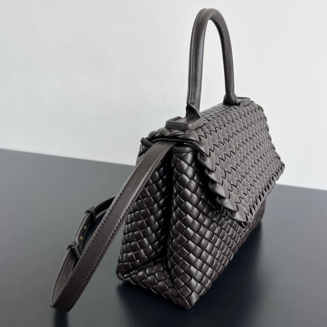 B s new 776783 Fall Winter Patti top handle bag features an Intrecciato flap. It can be worn on the shoulder, carried by hand, or as a crossbody bag with its detachable shoulder strap. Elegant and sophisticated, it s a versatile accessory for both casual and business settings. The interior features a zippered compartment and offers ample storage. It s the perfect complement to your fall and winter coats, making you the envy of everyone you meet. Size: 19*26*11cm