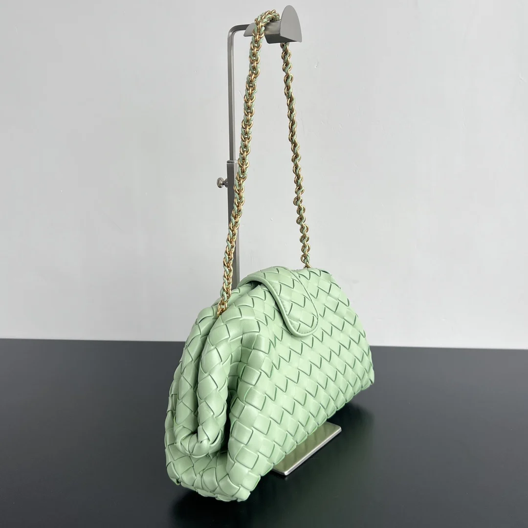 Bottega Veneta s new Lauren 1980 chain clutch 785807. This classic clutch was born in the late 1970s and became popular after the American actress carried it in the 1980 film American Gigolo, leading to its name, The Lauren 1980. It became the it bag for every girl at the time . The bag s design is inspired by ancient Roman architecture, featuring the iconic intrecciato nappa leather weave with a rigid frame and chain, making it more convenient for everyday use. The chain can be tucked inside when carried as a clutch [fireworks]. Available in a variety of colors to inject a refreshing touch into your daily outfits . Dimensions: 31.5x16.5x11