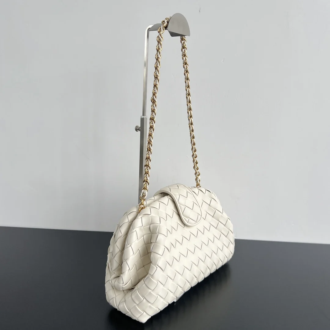 Bottega Veneta s new Lauren 1980 chain clutch 785807. This classic clutch was created in the late 1970s and became popular after the American actress carried it in the 1980 film American Gigolo. It was then named The Lauren 1980 and became the it bag in every girl s heart . The bag s design is inspired by ancient Roman architecture, featuring the iconic intrecciato nappa leather weave with a hard frame and chain, making it more convenient for everyday use. The chain can be tucked inside when carrying it as a clutch [fireworks]. Available in a variety of colors to inject a refreshing touch into your daily outfits Dimensions: 31.5x16.5x11
