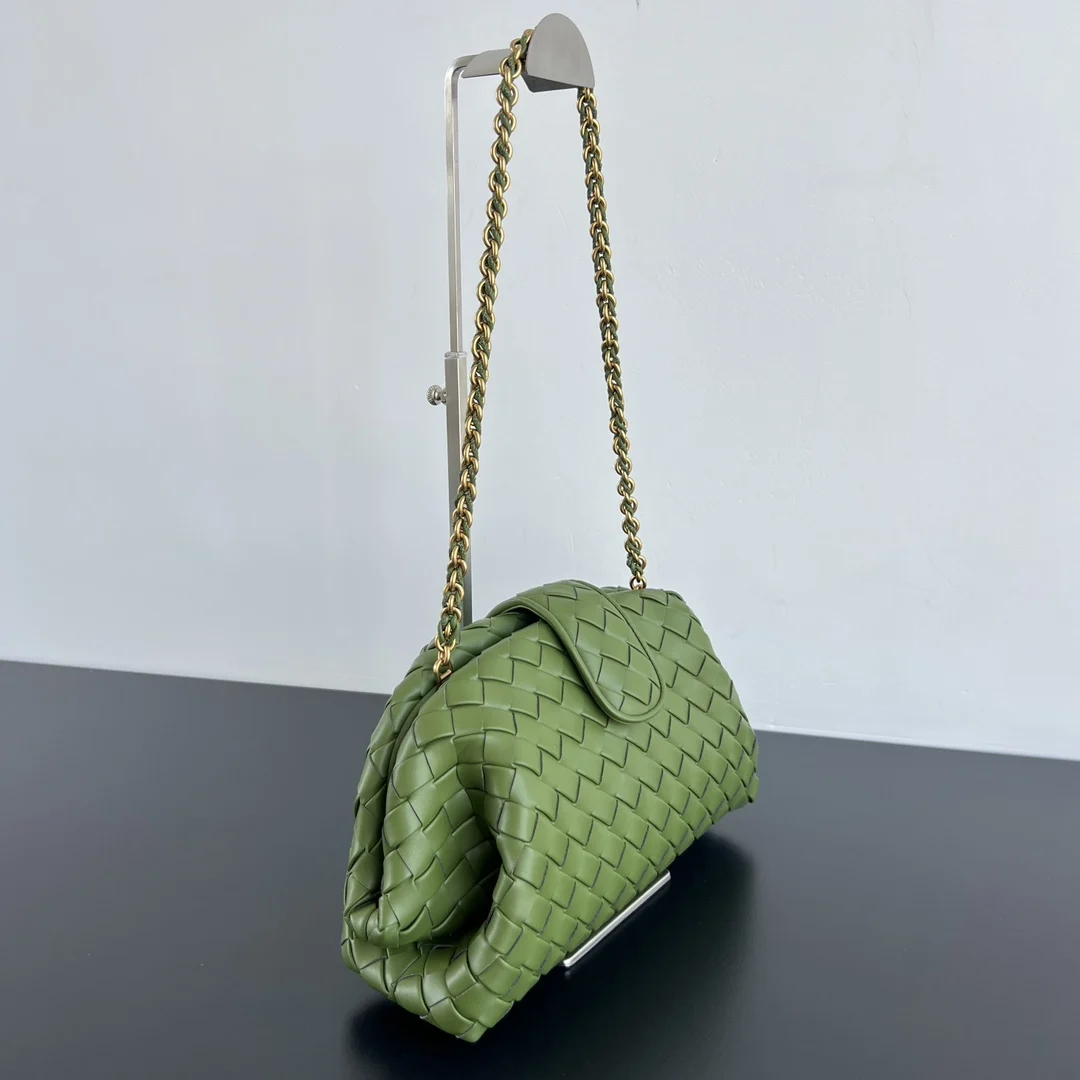 Bottega Veneta s new Lauren 1980 chain clutch 785807. This classic clutch was created in the late 1970s and became popular after the American actress carried it in the 1980 film American Gigolo. It was then named The Lauren 1980 and became the it bag in every girl s heart at that time. The bag s design is inspired by ancient Roman architecture, featuring the iconic intrecciato nappa leather woven body with a rigid frame and chain design for easy daily use. The chain can be tucked inside when carrying as a clutch [fireworks]. Available in a variety of colors to inject a refreshing touch into your daily outfits Dimensions: 31.5x16.5x11