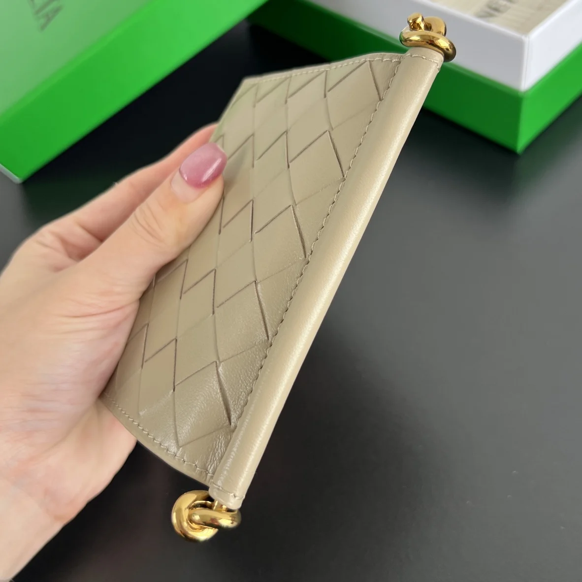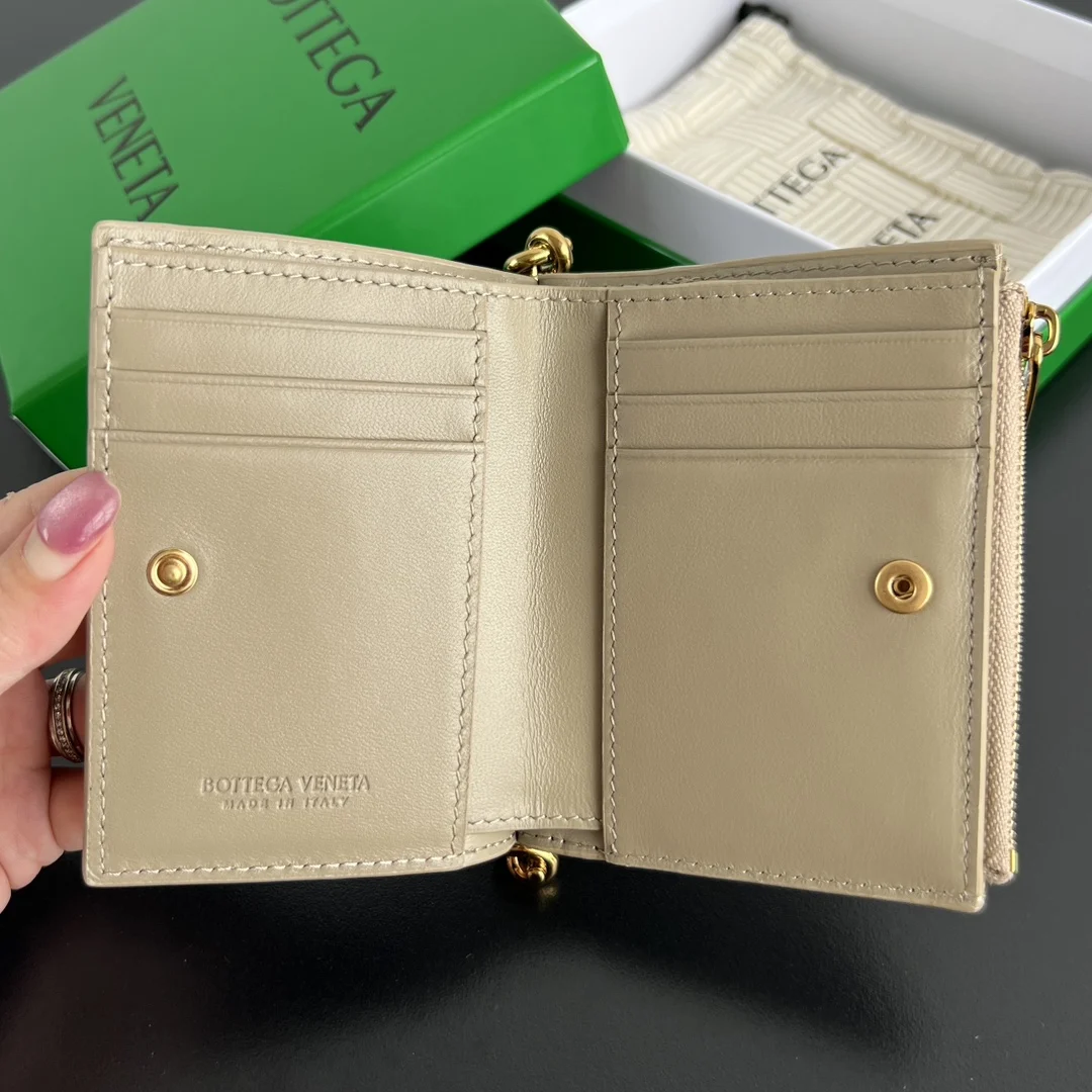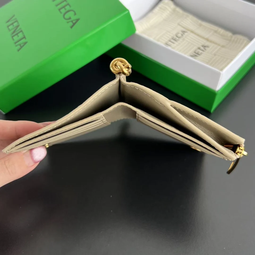 BV s new Solstice series short wallet 788055 features classic woven leather with metal hardware details, enhancing the design and integrity of the appearance . Made of soft and co..