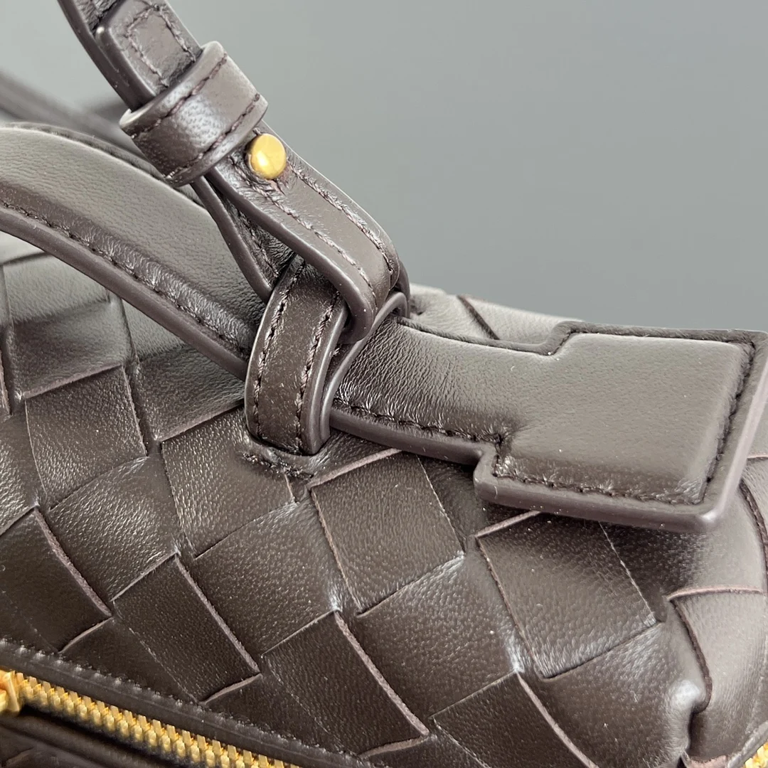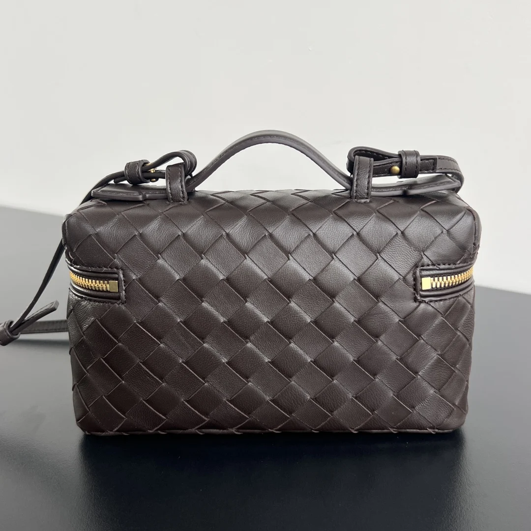 BV s new Vanity Case with strap, style 789109, is an ultra-practical and stylish boxy cosmetic bag. It features the brand s most iconic woven calfskin leather, complemented by a two-way zipper closure. The overall style is both vintage and elegant. It has a top handle and an adjustable shoulder strap, allowing for elegant hand-carrying or casual crossbody wear, unlocking various styling scenarios. Dimensions: 22x12.5x5.