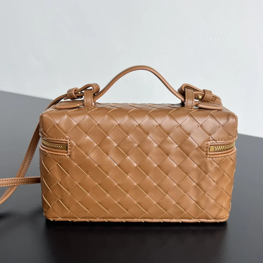 BV s new Vanity Case with strap, style 789109, is an ultra-practical and stylish boxy cosmetic bag. It features the brand s most iconic woven calfskin leather, paired with a two-way zipper closure. The overall style is retro and elegant. It has a top handle and an adjustable shoulder strap, allowing for elegant hand-carrying or casual crossbody wear, unlocking various styling scenarios. Dimensions: 22x12.5x5.