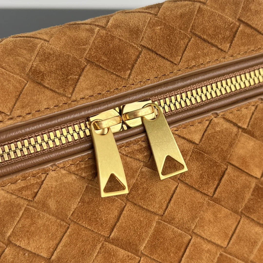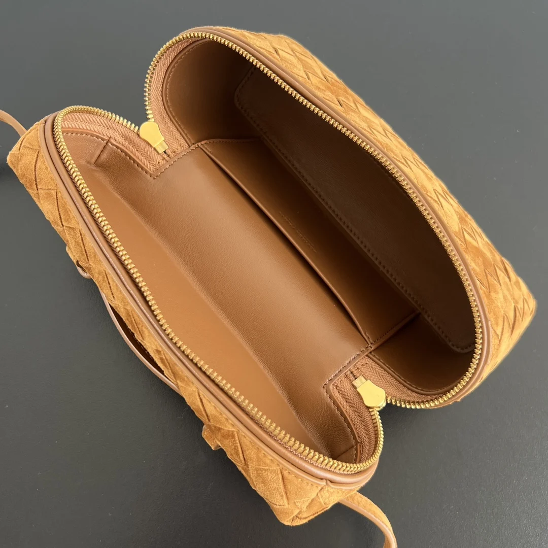 The new BV Vanity Case suede makeup bag, 789109, is a highly practical and stylish boxy makeup bag. It features the brand s most iconic woven calfskin, complemented by a two-way zipper closure. The overall style is retro and elegant. It has a top handle and an adjustable shoulder strap, allowing for elegant hand-carrying or casual crossbody wear, unlocking various styling scenarios. Dimensions: 22x12.5x5.