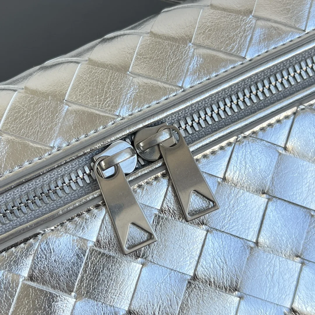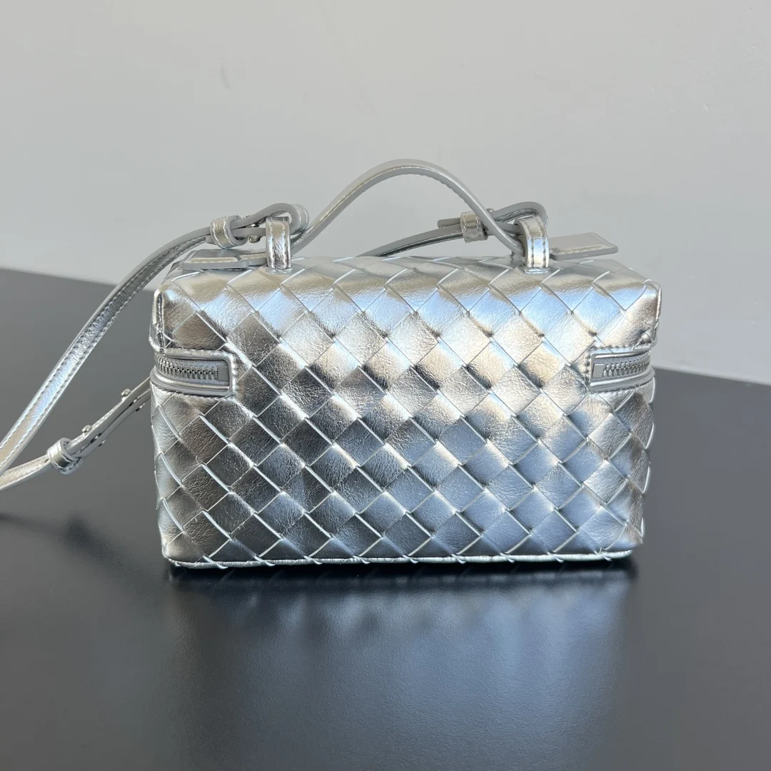 BV New Vanity Case Cord Makeup Bag, 789109 The metallic sheen is super eye-catching, perfectly capturing the festive atmosphere Crafted with the brand s most classic woven calfskin, featuring a two-way zipper closure. The overall style is retro and elegant. It has a top handle and an adjustable shoulder strap, allowing for elegant hand-carrying or casual crossbody wear, unlocking various styling scenarios Dimensions: 22x12.5x5