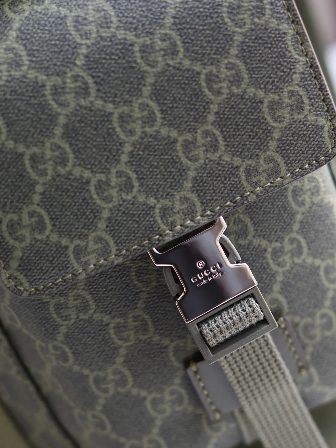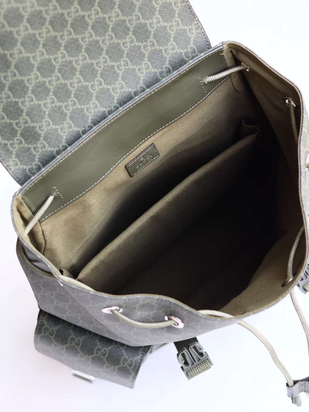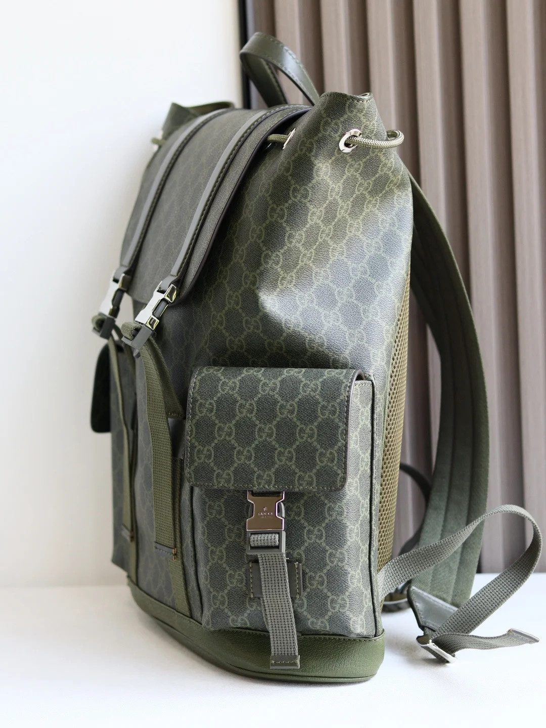 The GG backpack features the classic GG Supreme canvas, known for its soft texture and flexibility, a timeless material that has remained a signature of the brand. Crafted from microfiber-coated fabric, this backpack is presented in all black for a distinctive appeal. Tonal leather trim enhances the silhouette, while the iconic Web stripe adds a touch of color.* Black GG Supreme canvas* Black leather trim* Red and blue Web stripe* Cotton linen lining* Padded mesh back* Canvas straps* Two side pockets with buckle closure* Top handle with 8cm drop* Drawstring closure with flap* Style: 792080* Dimensions: 46cm (H) x 35cm (W) x 12cm (D)* Color: Green Glue Original Leather