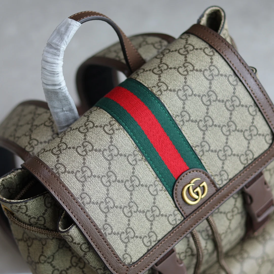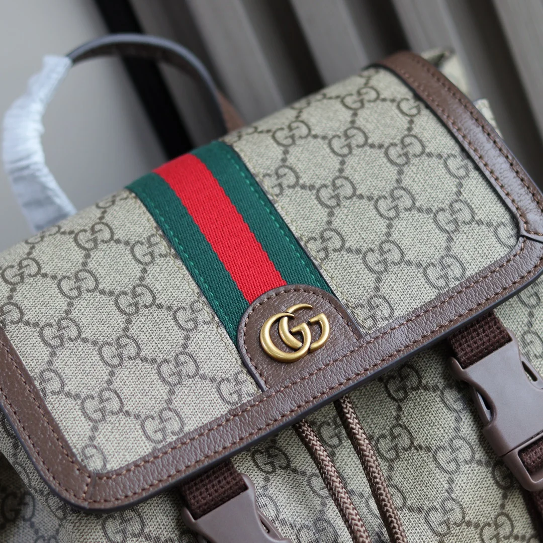 Ophidia small GG backpack. The Ophidia line of men s bags, including mini crossbody bags, briefcases and totes, is updated with practical details. The GG pattern is presented in GG..