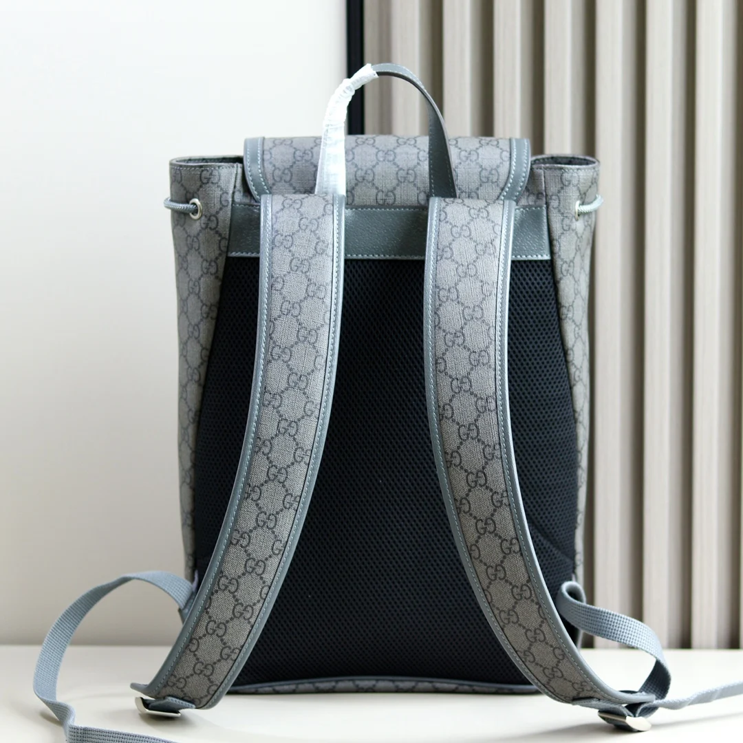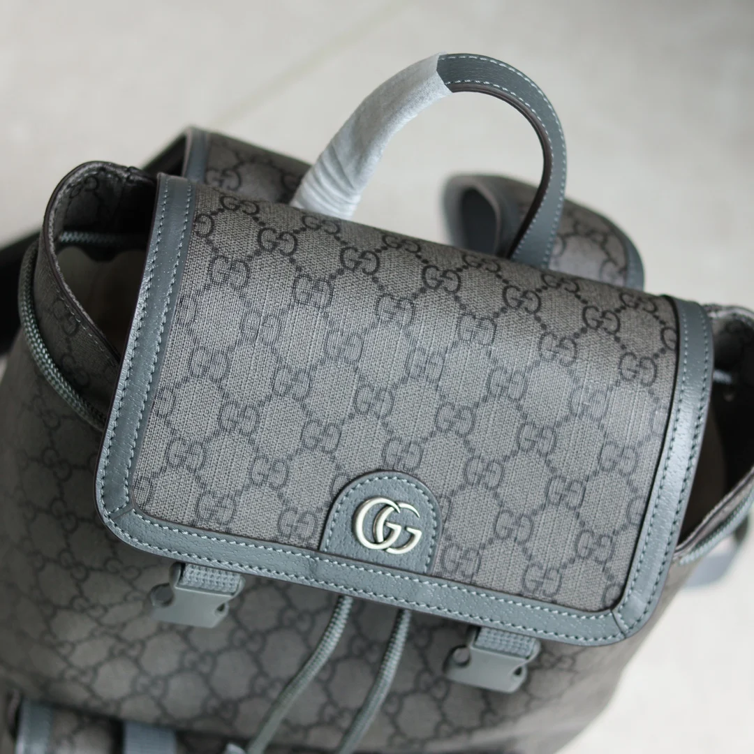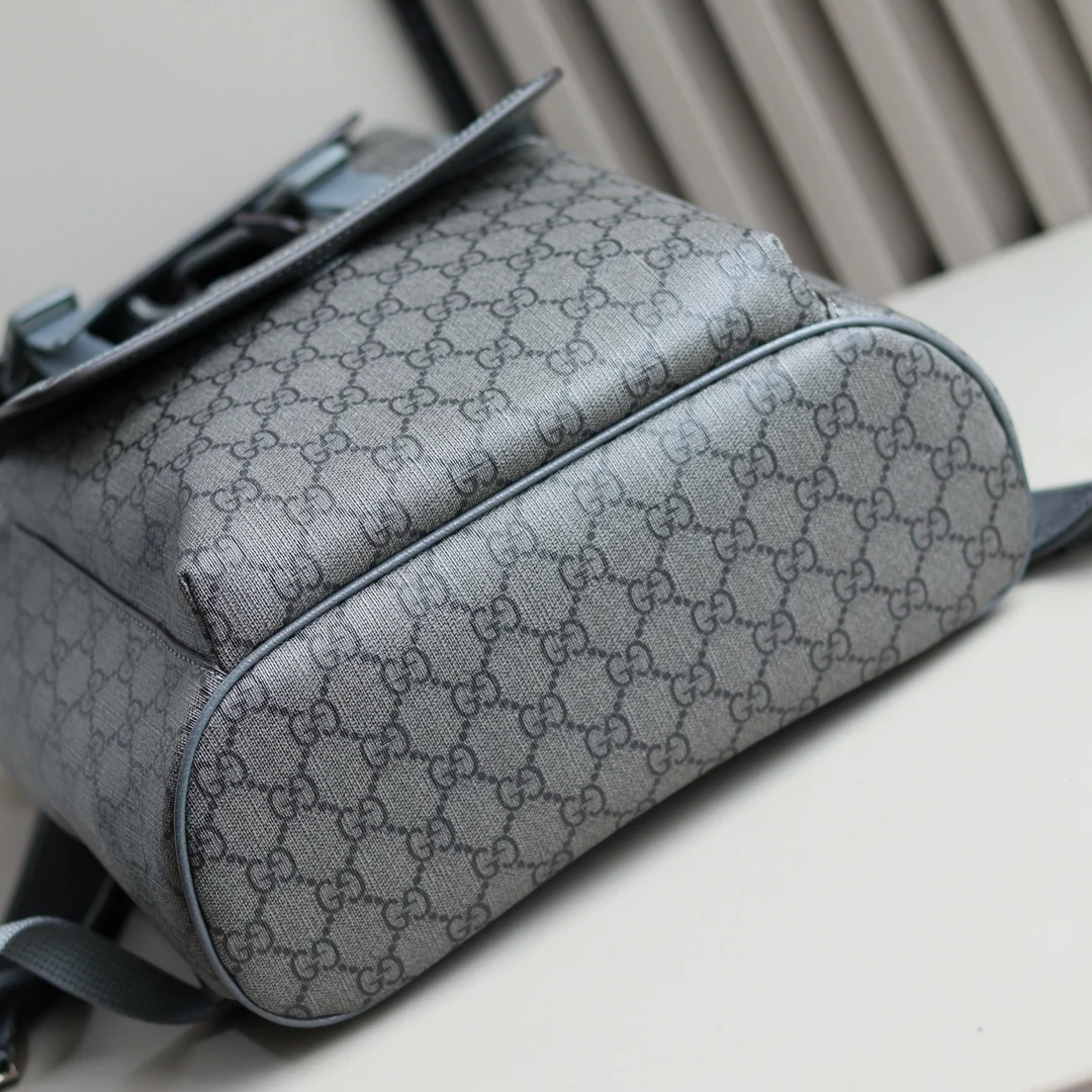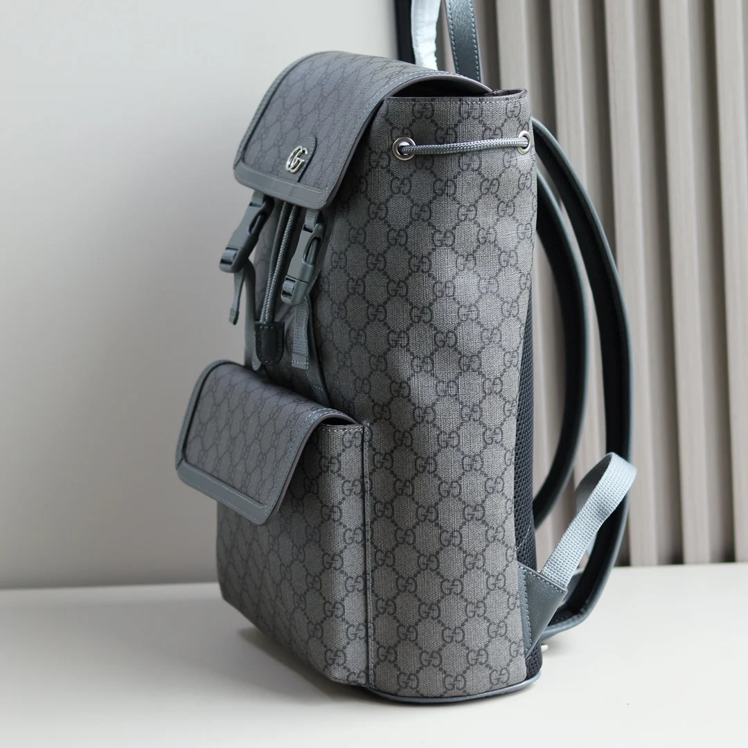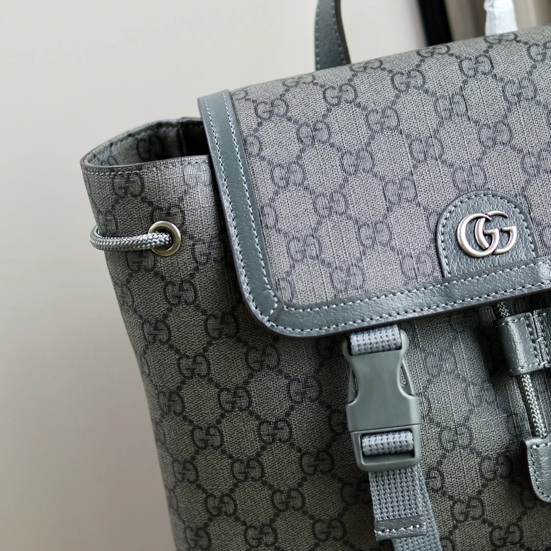 Ophidia small GG backpack. Mini bags, briefcases and totes from the Ophidia line of men s bags interpret a new style with practical details. The Double G motif is presented in GG Supreme canvas and classic colors to interpret the brand s classic design elements, adding a unique style to each bag. On this small backpack, crafted in beige and ebony, the pattern is presented in a striking and glamorous way. Beige and ebony GG Supreme canvas, gray leather trim, gold-toned hardware, cotton linen lining, Double G, Interior: one zipper pocket Exterior: one magnetic snap pocket, Top handle with 8cm drop, Drawstring and flap closure. Style: 792114. Dimensions: 29cm (W) x 40.5cm (H) x 13.5cm (D). Color: Gray PVC. Weight: Approximately 0.8 kg. Made in Italy.