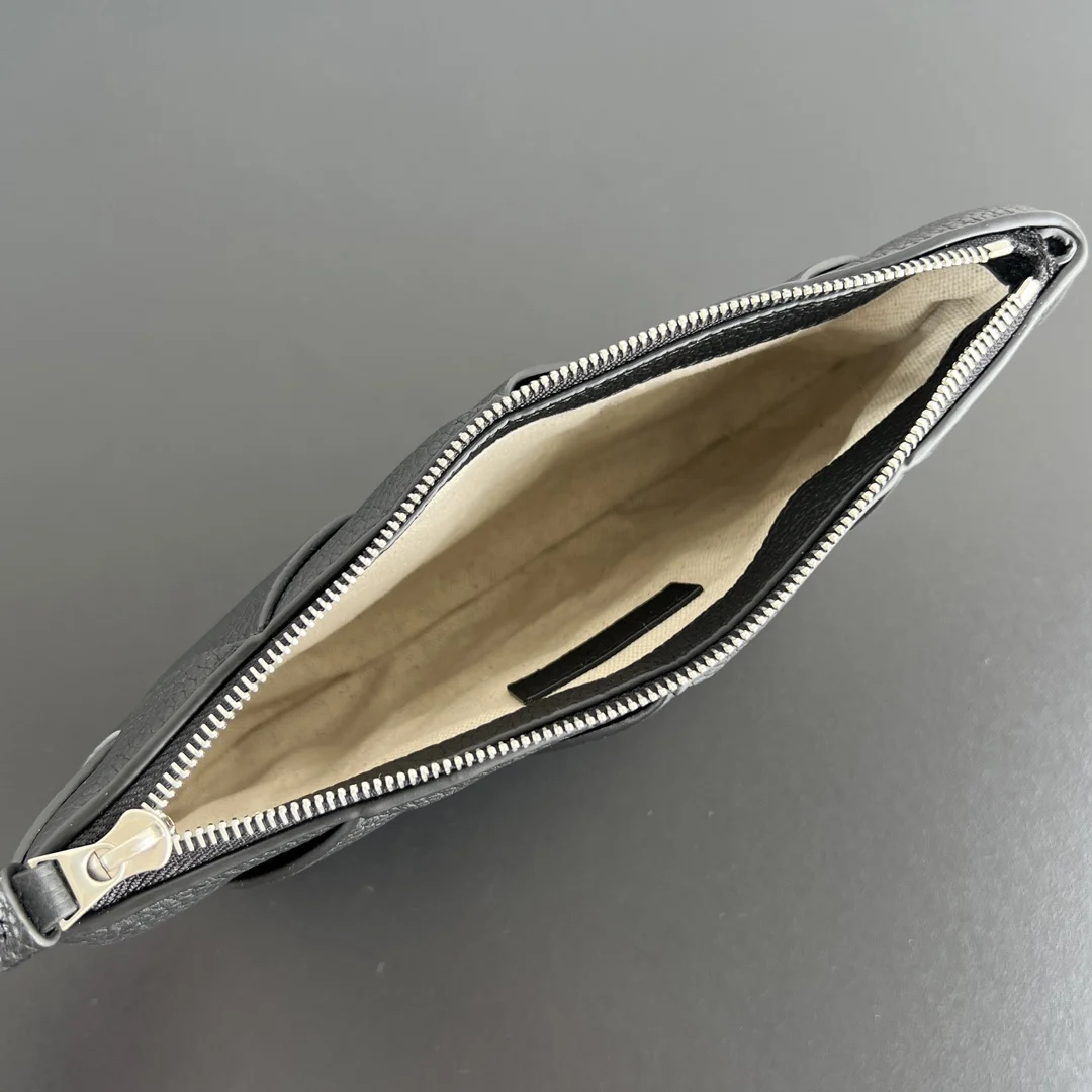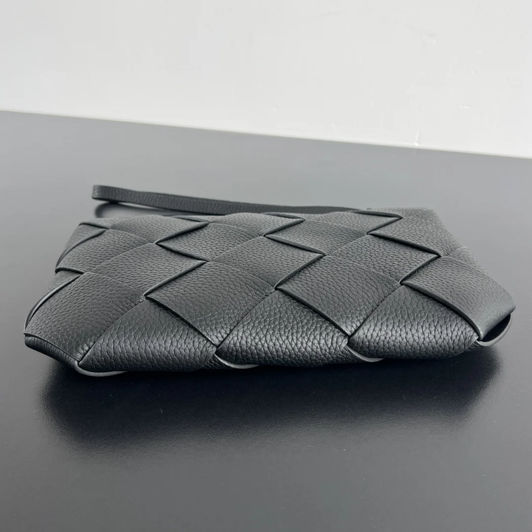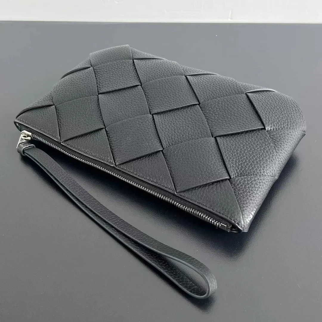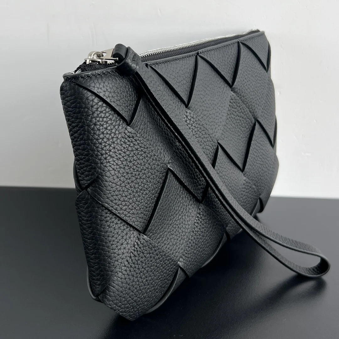 Bv New Men s Diago Clutch 795119 A must-have item for successful men. Classic wide woven design exudes a luxurious and sophisticated temperament Made of imported grained calfskin, it is delicate and textured. Equipped with a wrist strap, it is exquisitely designed. Zipper closure. The clutch is moderately sized and can hold personal belongings, making travel more convenient. It is also youthful and fashionable. It is quite upscale whether it is given as a gift or for personal use. Size: 25x16.5x2