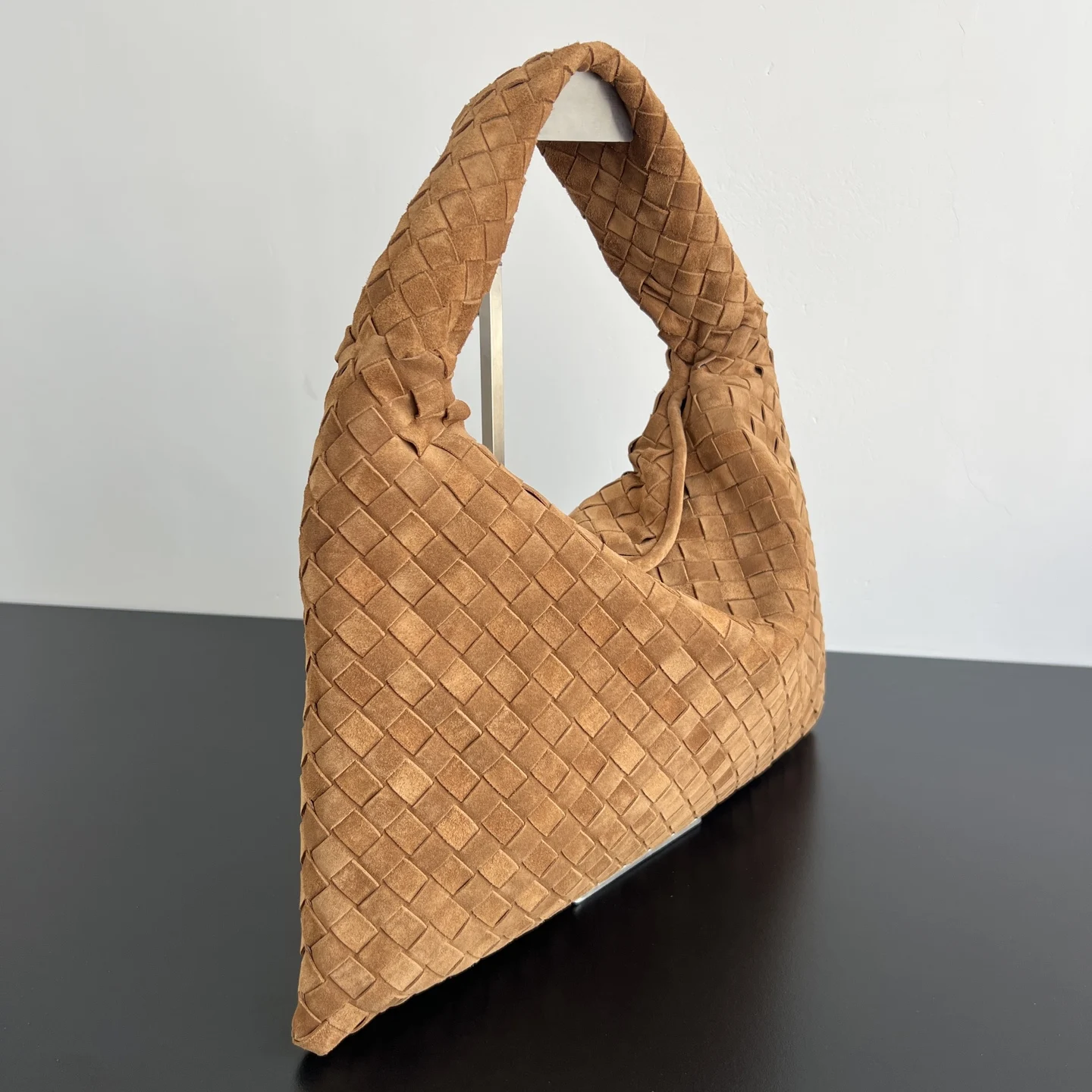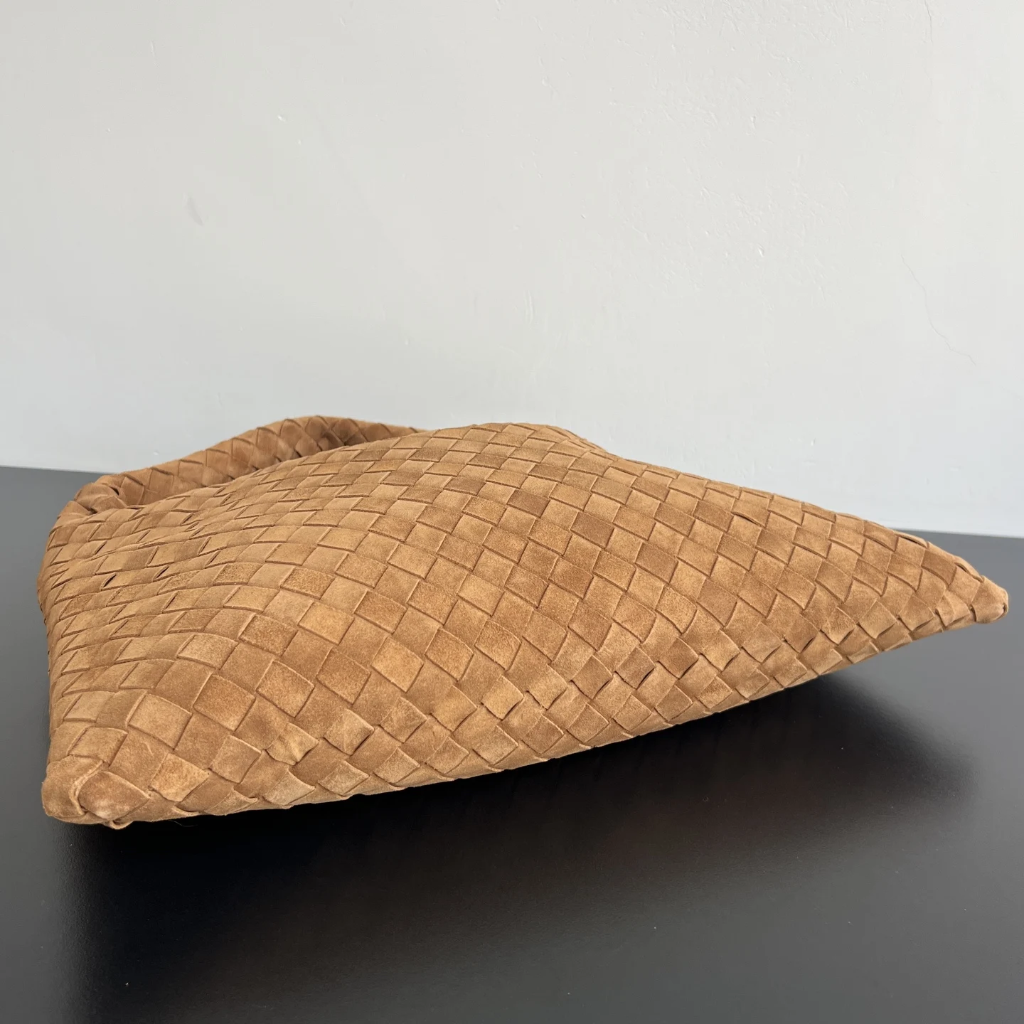 Bottega Veneta New Medium Lambskin HOP Bag 796262. The body and handle are woven from a single piece of lambskin leather. The soft and relaxed Hop bag symbolizes the praise for innovation and timeless craftsmanship. The pyramid silhouette combines practicality and fashion. Modern and casual, the double-sided closure design at the opening provides more convenience and security! Made of soft calfskin, it is full of texture. A must-have for fashionable ladies who like minimalist, comfortable, and casual styles! Dimensions: 46x21x10