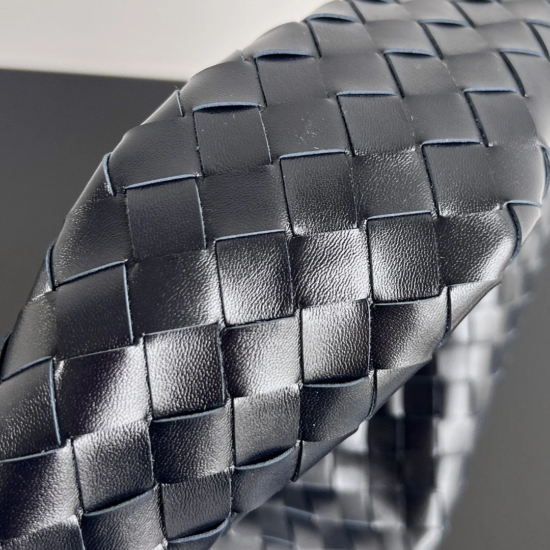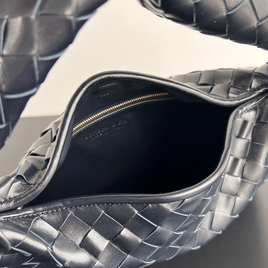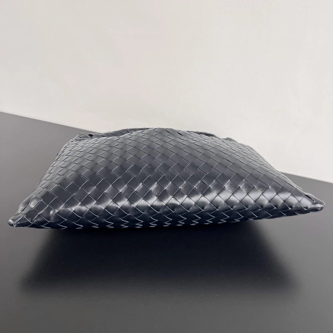 Bottega Veneta New Medium Hop Bag 796262. The body and handle are crafted from a single piece of woven leather, creating a soft and relaxed silhouette. The Hop symbolizes an appreciation for innovation and timeless craftsmanship. The pyramid shape combines practicality and style, offering a modern and casual look. The double-sided closure at the opening provides convenience and security. Made from soft calfskin, it exudes quality. A must-have for fashionable women who appreciate minimalist, comfortable, and effortless style! Dimensions: 46x21x10.