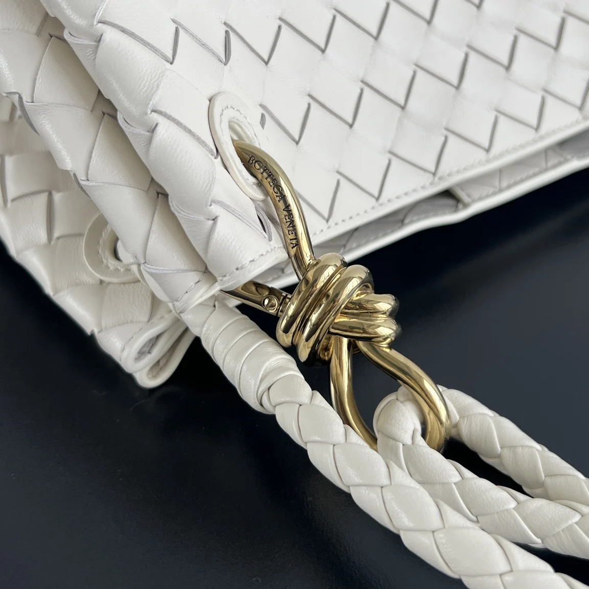 BV new intrecciato woven leather shoulder bag 796571 with detachable crossbody strap and a mini pouch inside. The design retains BV s unique woven style. The parachute bag is a bag that you ll fall in love with even before seeing it in person. The small golden knot embellishment is full of minimalist sophistication, meeting your needs for different occasions. Size: 30X26X20cm