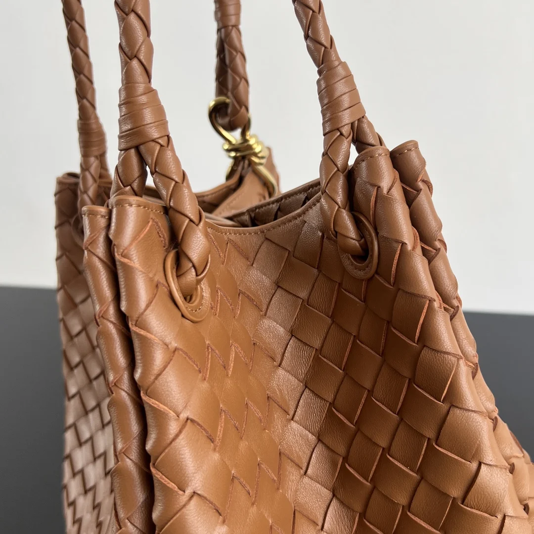 BV New Intrecciato Woven Leather Shoulder Bag 796571 with Detachable Crossbody Strap and Built-in Mini Pouch. The parachute bag features BV s signature woven design and a minimalist, high-end touch with a small gold knot accent, catering to various occasions. Size: 30X26X20cm