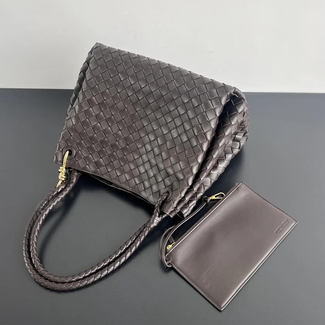 BV new intrecciato woven leather shoulder bag 796571 with detachable crossbody strap and a mini pouch inside. The design retains BV s unique woven style. The parachute bag is a bag that you ll fall in love with even before seeing it in person. The small golden knot embellishment is full of minimalist sophistication, meeting your needs for different occasions. Size: 30X26X20cm