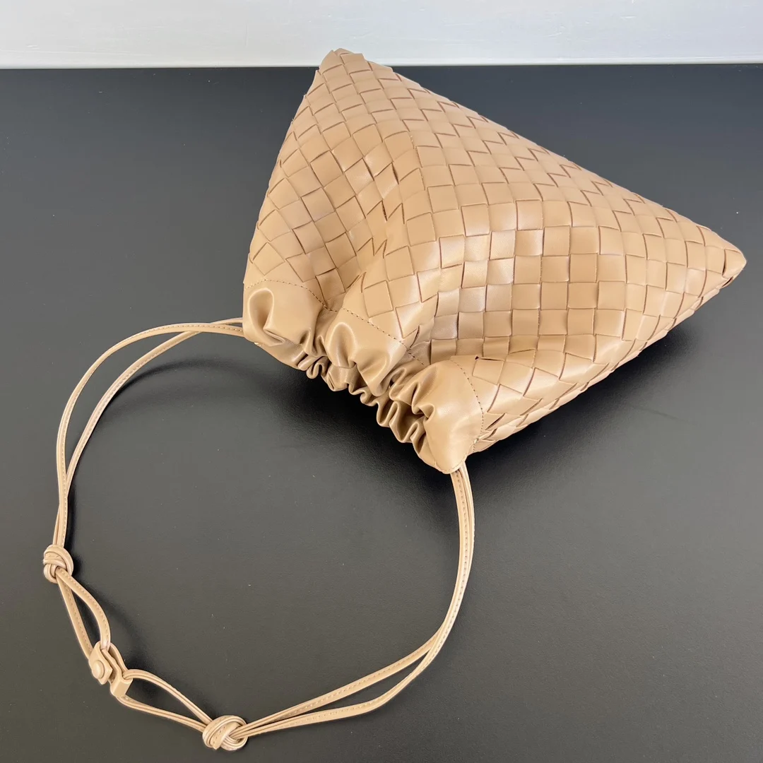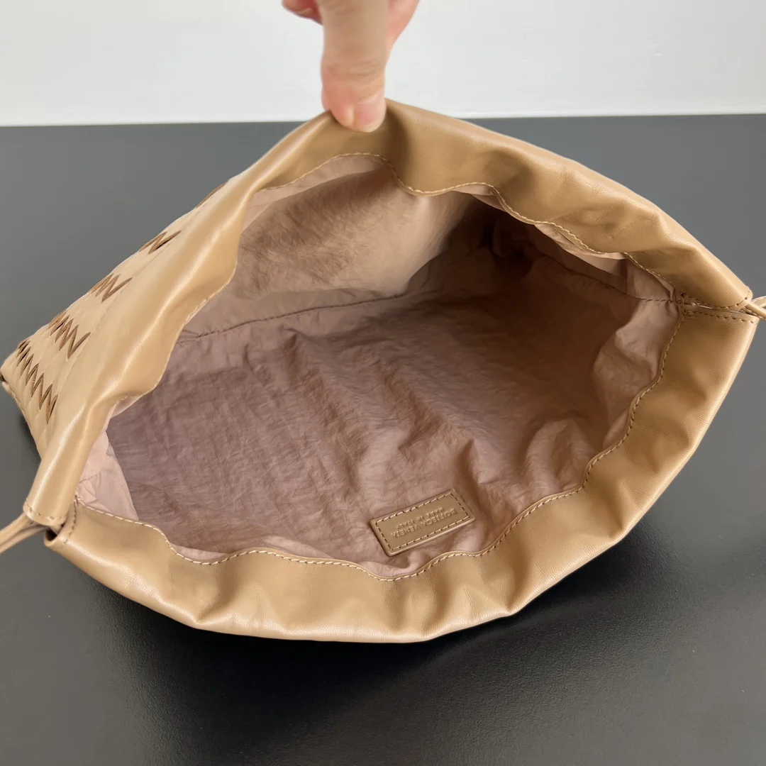 Bottega Veneta New Drawstring Dustbag Trash Bag 796728. The trash bag is surprisingly versatile! A relaxed and effortless vibe. With its classic woven design, it s a timeless piece in the fashion world. The drawstring closure creates natural, open pleats, and the soft, smooth calfskin exudes a relaxed and refined feel throughout. It s not only lightweight but also has ample capacity. If you re looking for a bag with a relaxed feel, get this trash bag that will bring you joy! Size: 32x23
