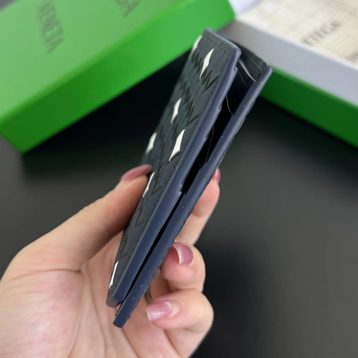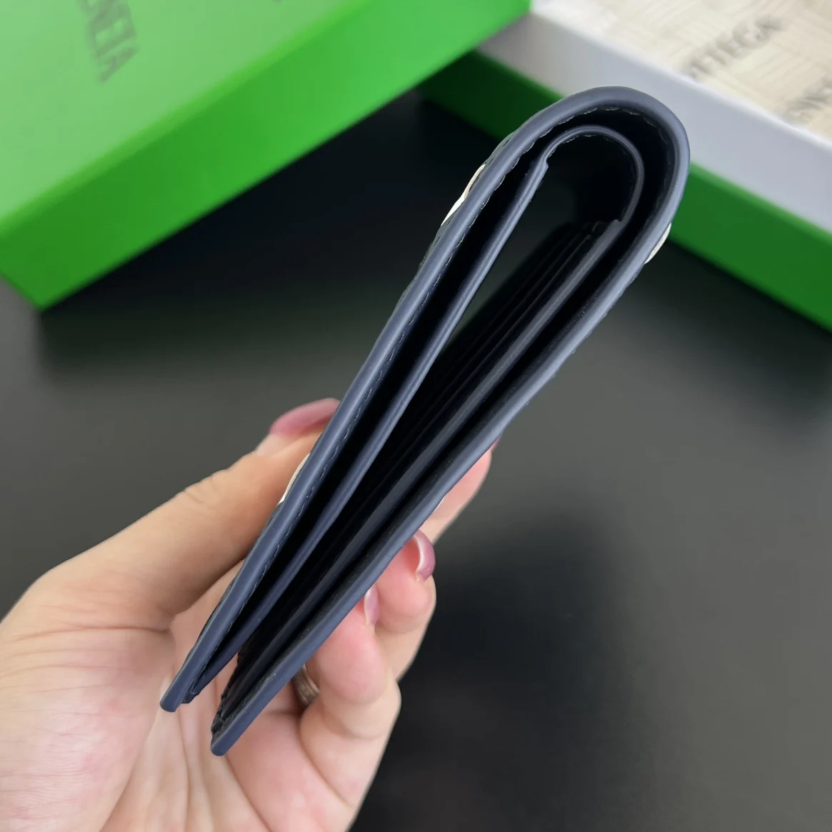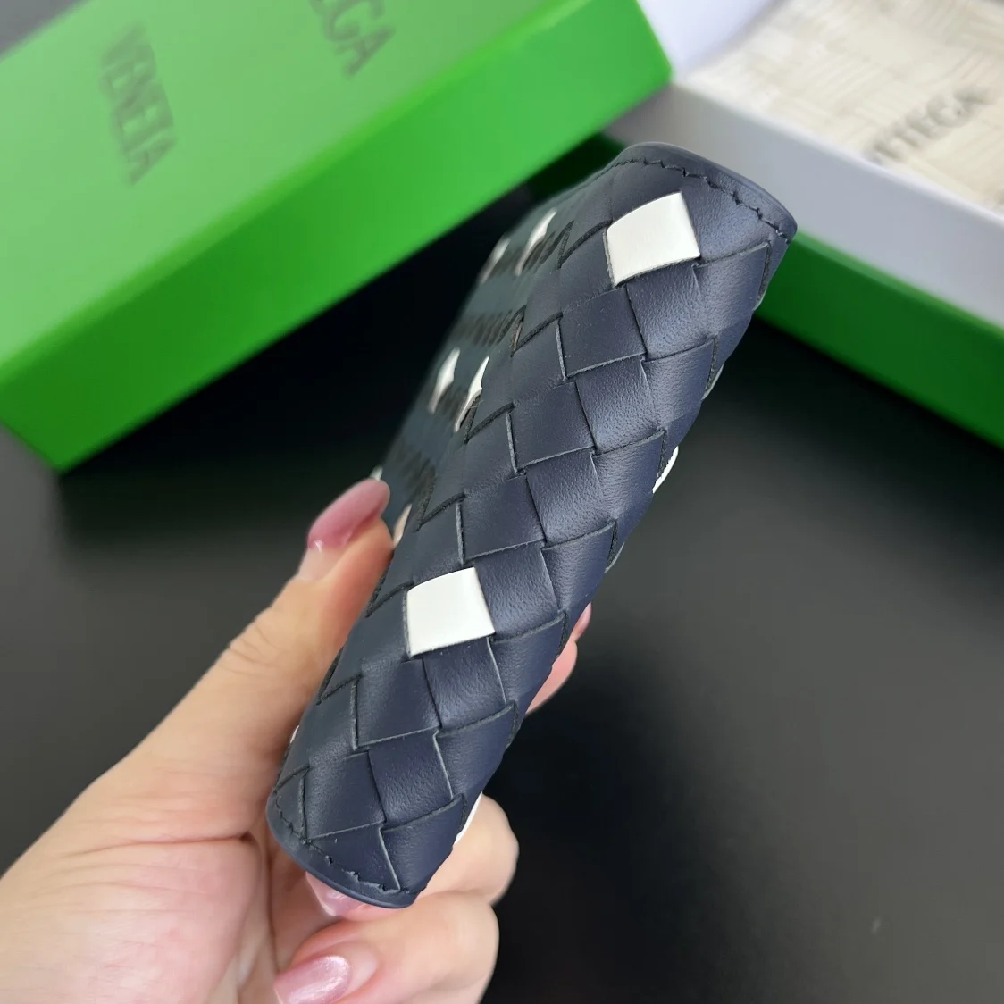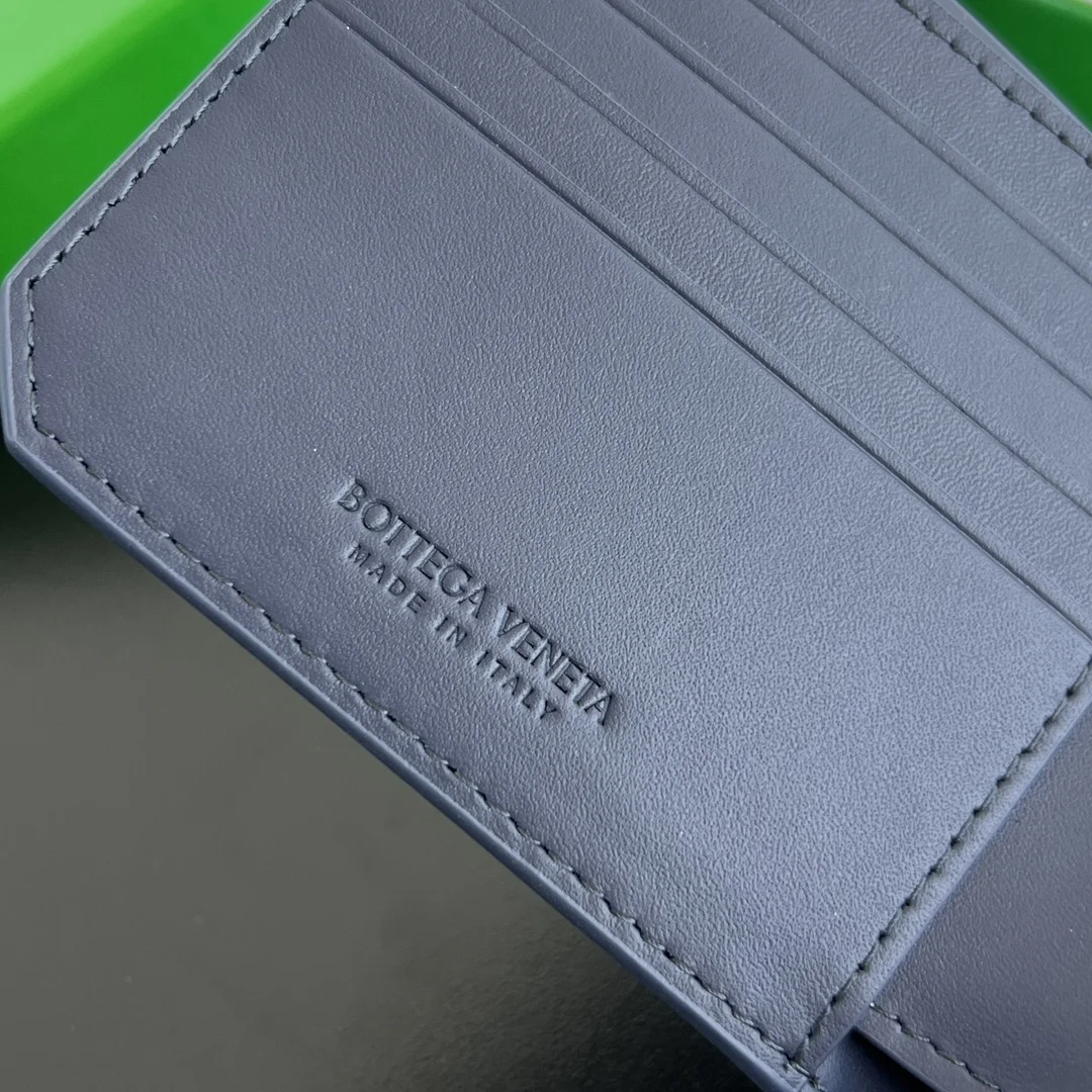 BV New 796966 Woven Piccolo Bi-Fold Wallet features a fine woven design that combines fashion and classic style. Crafted from classic calfskin leather, this bi-fold wallet offers 8 card slots, a bill compartment, and two additional pockets for organized storage of coins, banknotes, and cards. Size: 9.5*11*0.5cm.
