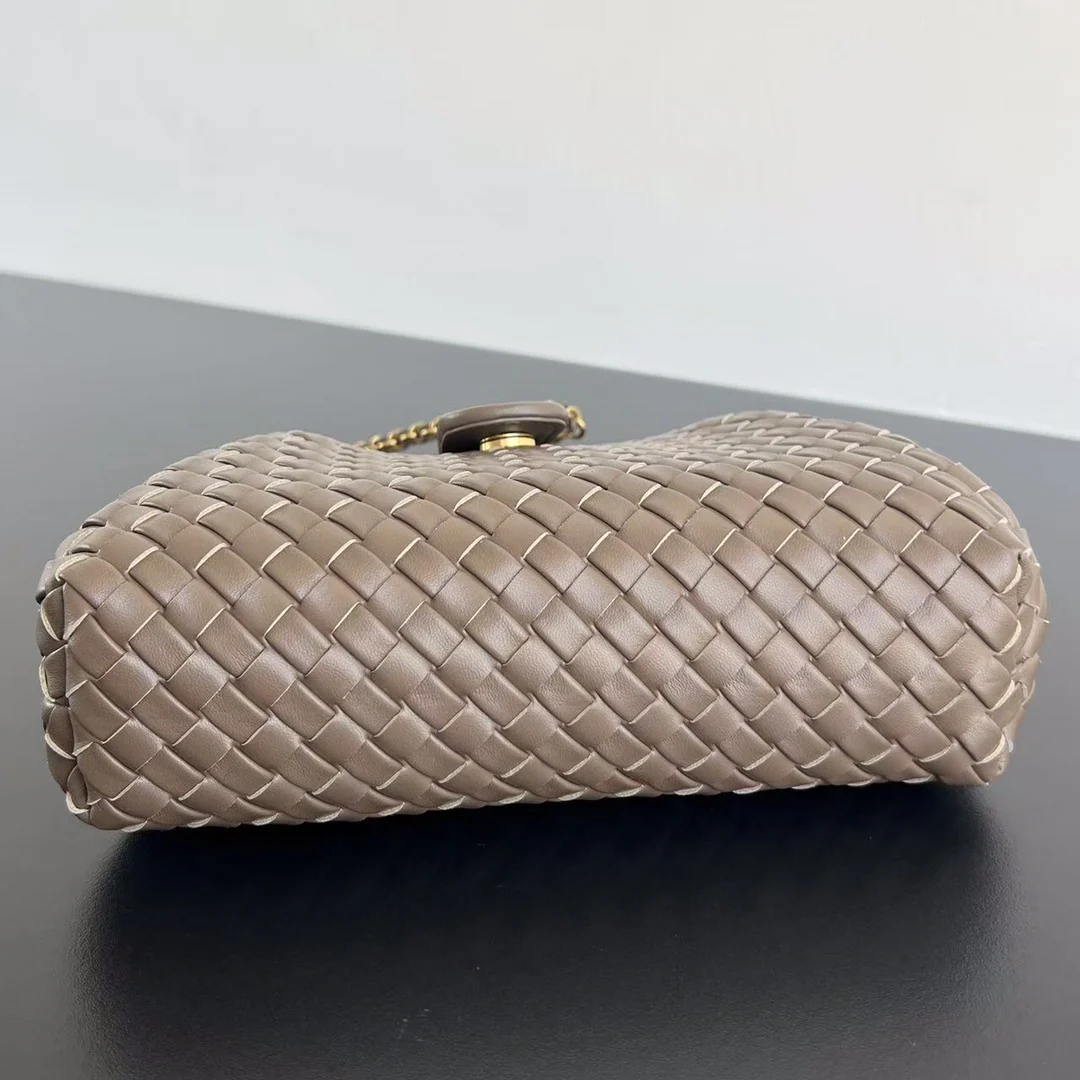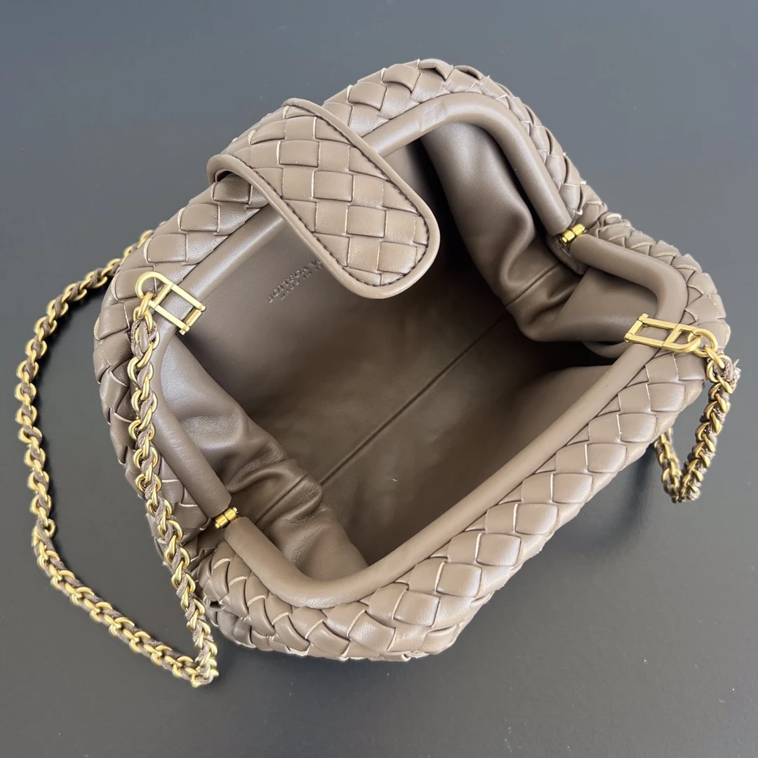Bottega Veneta s New Lauren 1980 Small Chain Crossbody Bag 804038. This classic clutch was born in the late 1970s and gained popularity after the American actress carried it in the 1980 film American Gigolo, leading to its name, The Lauren 1980. It became every girl s dream Bag . The bag s design is inspired by ancient Roman architecture, featuring the iconic lntrecciato nappa leather weave with a rigid frame and chain, making it more suitable for everyday use. The small, long chain design adds a crossbody option, creating a gentle and sophisticated, understatedly chic feel Dimensions: 27x15x8