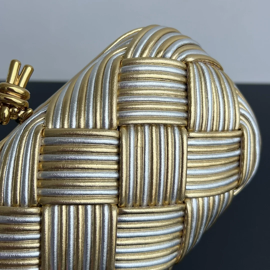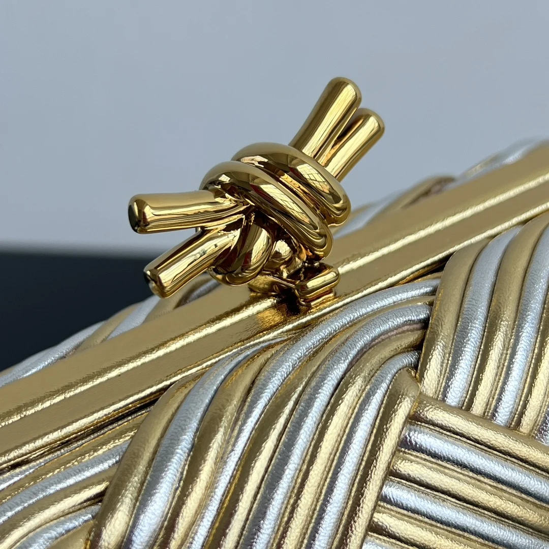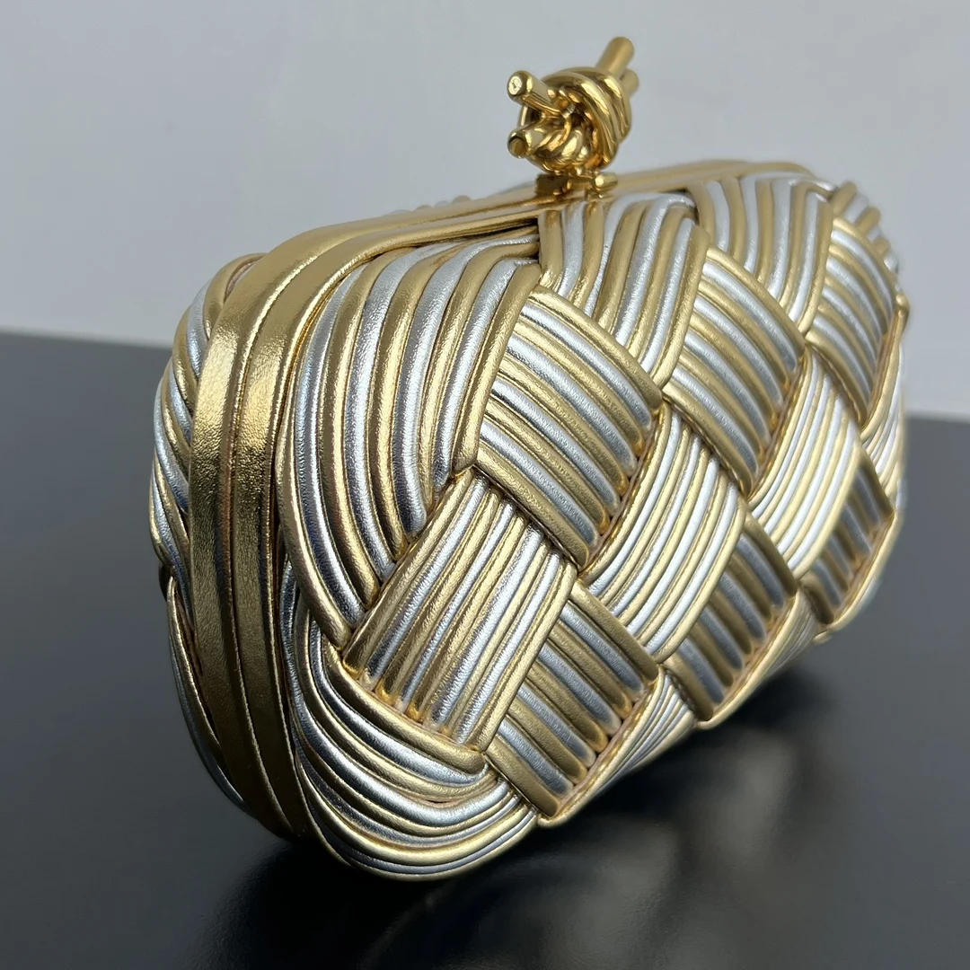 Bv New Kont Bi-Color Clutch 804532 Gold and Silver Combination, Overflowing with Luxury, a Clutch That Captures the Heart at First Glance Gold and silver woven leather intertwine, radiating brilliance in every detail The iconic Kont knot design on top is a classic heritage of Bv. No matter what the occasion, holding it will make you the most dazzling presence in the room, a unique charm that stands out from the crowd Dimensions: 20x12x5.5