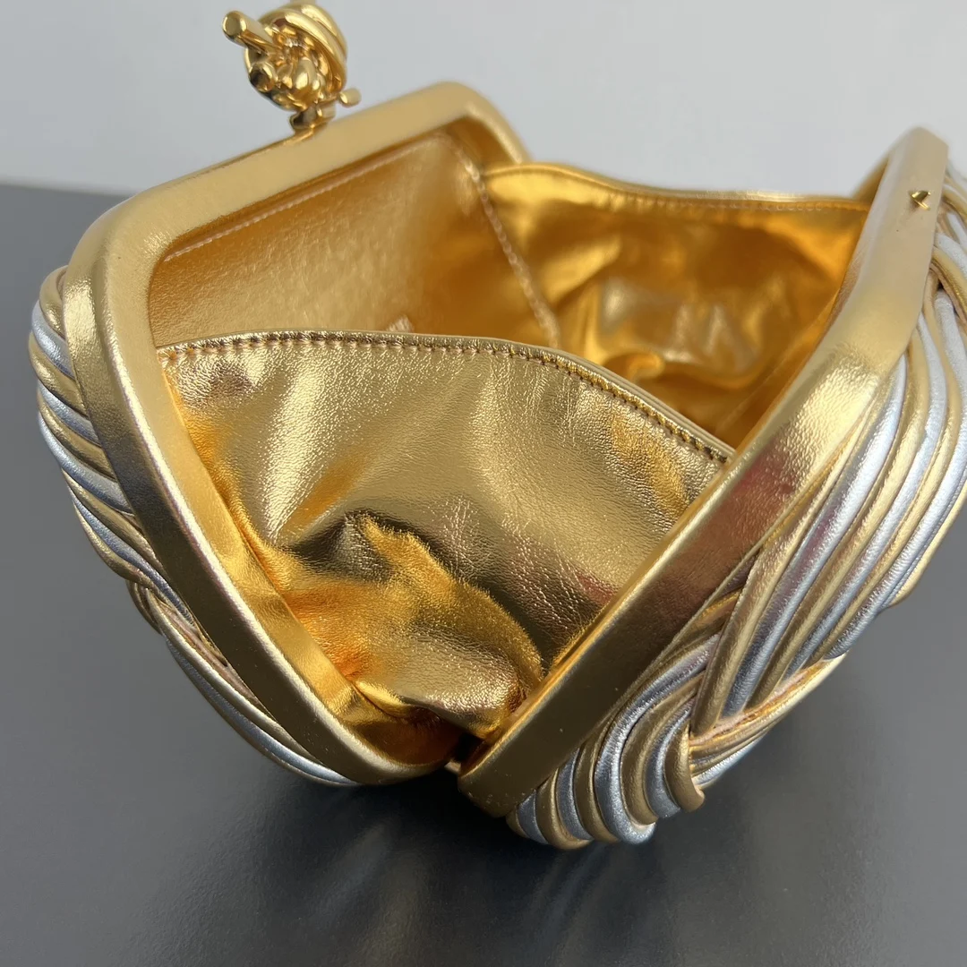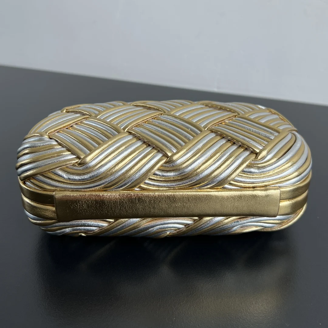 Bv New Kont Bi-Color Clutch 804532 Gold and Silver Combination, Overflowing with Luxury, a Clutch That Captures the Heart at First Glance Gold and silver woven leather intertwin..