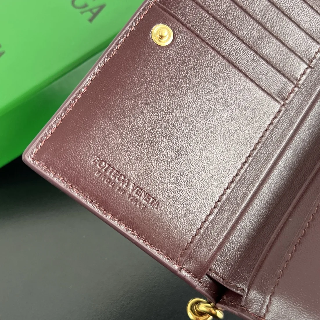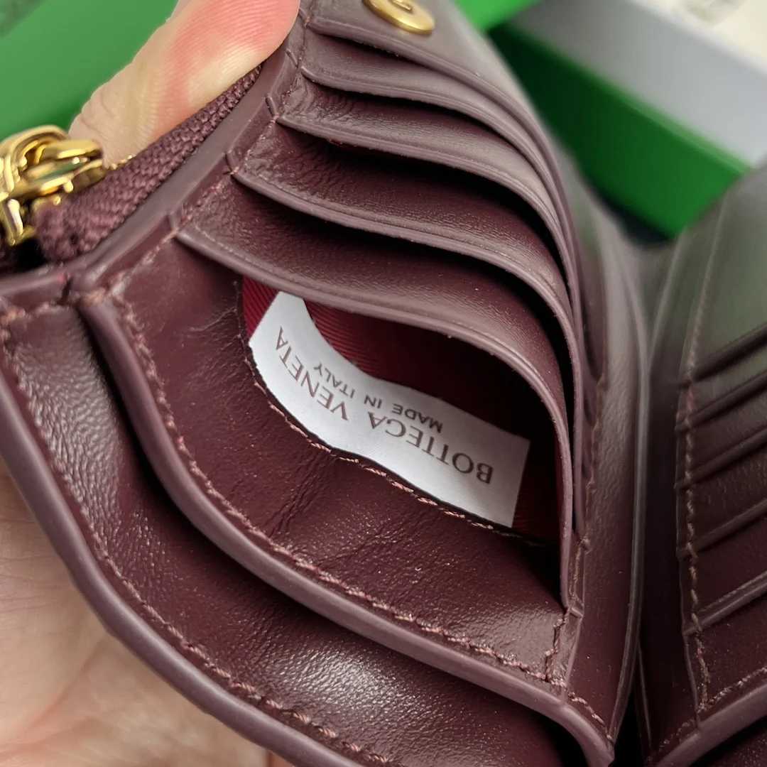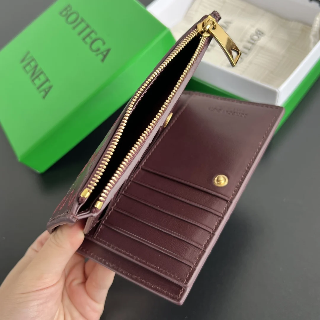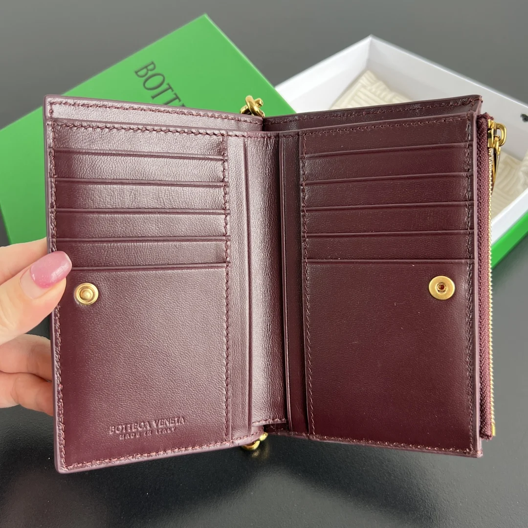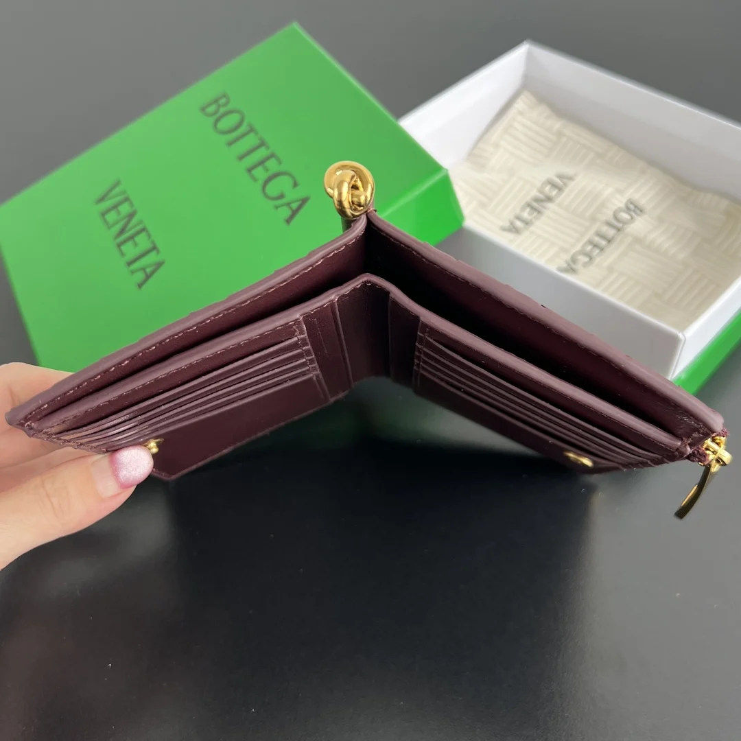 BV New Solstice Series Short Wallet 806078 features classic woven leather with metal hardware details, enhancing the design and integrity of the appearance . Made of soft and comfo..