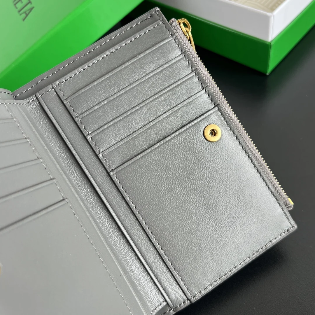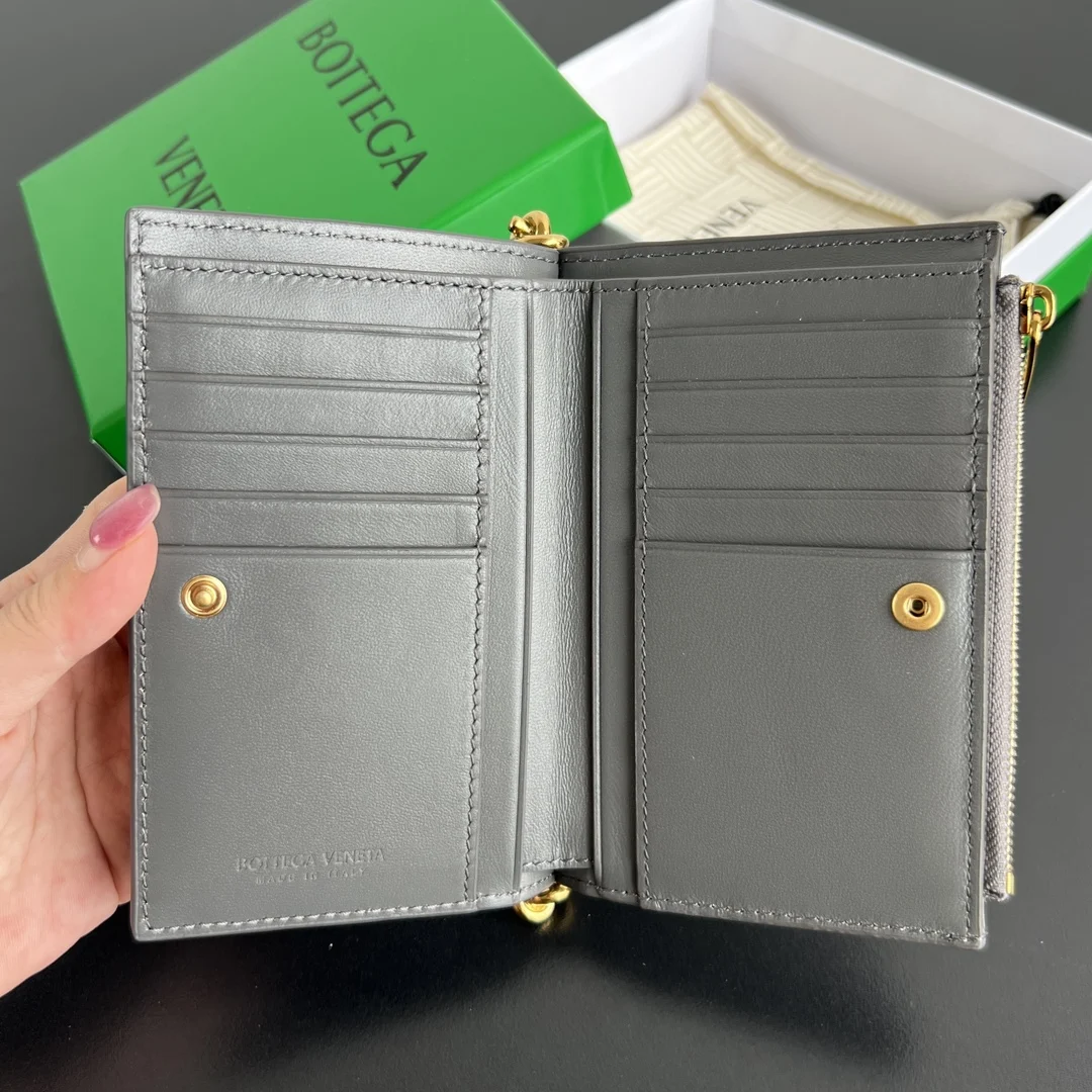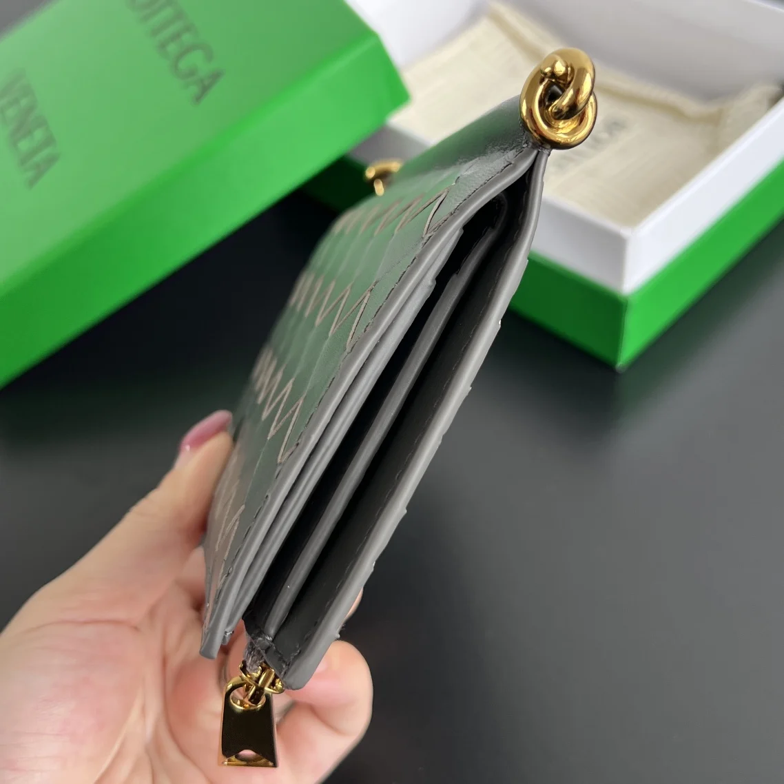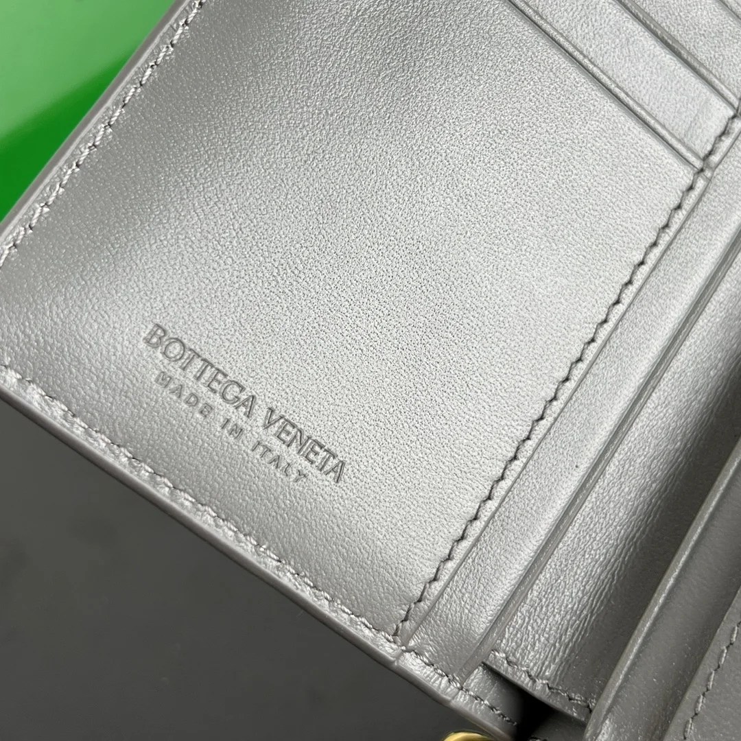 BV New Solstice Series Short Wallet 806078 features classic woven leather with metal hardware details, enhancing the design and integrity of the appearance . Made of soft and comfo..