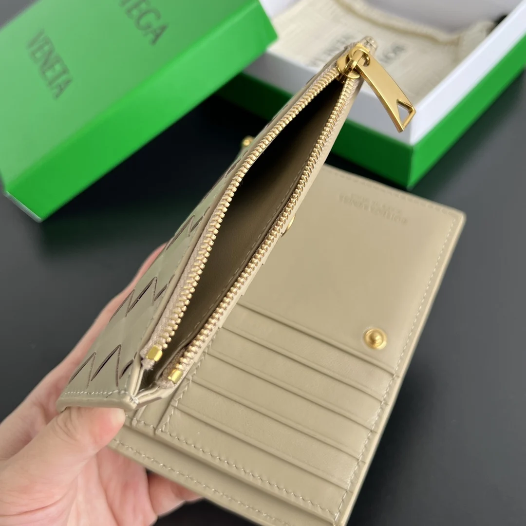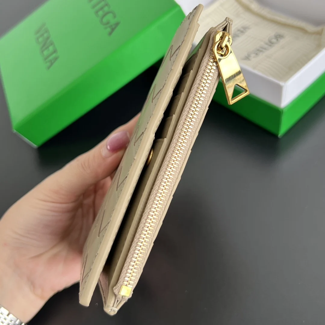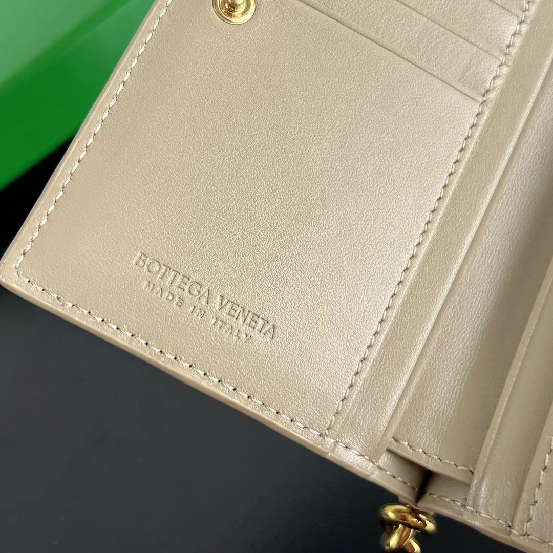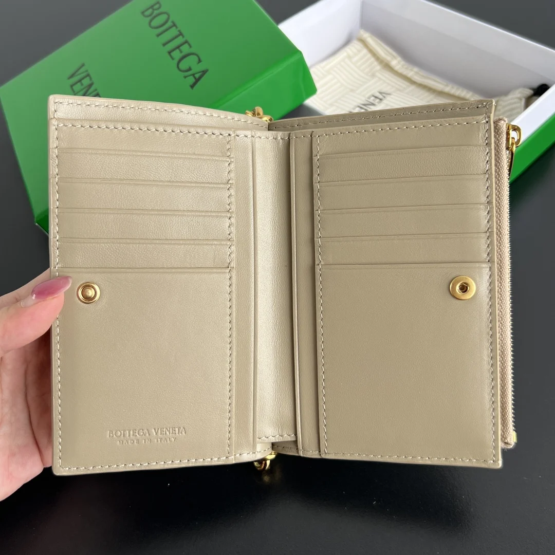BV New Solstice Series Short Wallet 806078 Features classic woven leather with metal hardware details, enhancing the design and integrity of the appearance . Made of soft and comf..