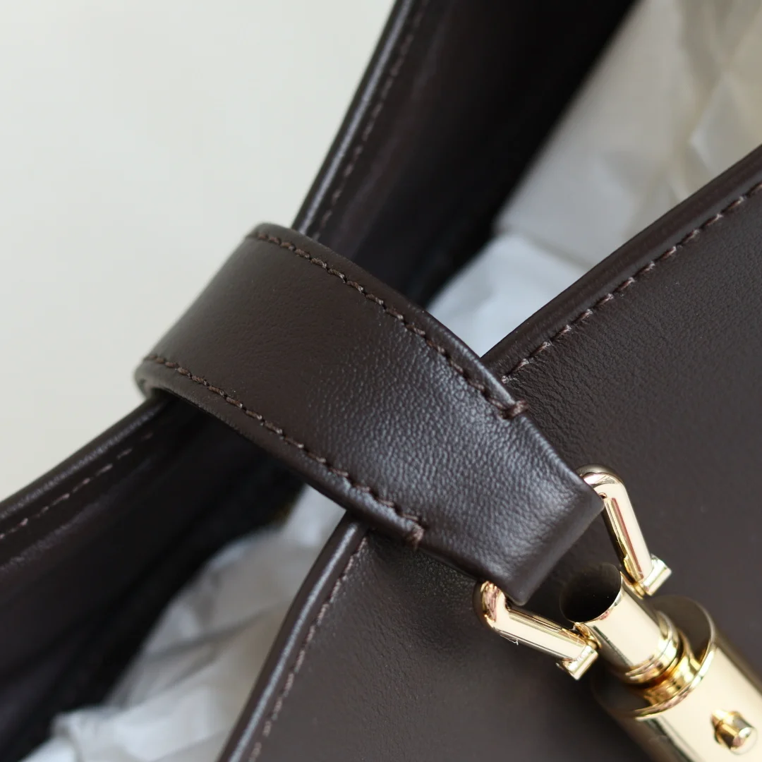 The new and improved Gucc1 Jackie underarm bag is definitely my bag of the year. The old model has been upgraded with two straps, a full leather strap and a classic red and green strap. The interior has been replaced with full leather, instantly elevating the overall texture. It took almost half a year from purchasing the authentic product to developing the leather, and I insisted on waiting for the correct original factory leather. The original factory leather is truly unmatched, and the feel is completely different. The oily texture and inherent sophistication cannot be replicated. The texture of the Angola red leather is incredibly good, and it looks expensive! This is definitely the must-buy bag of the year! Model: Cowhide 810232; Size: 28x19x4cm