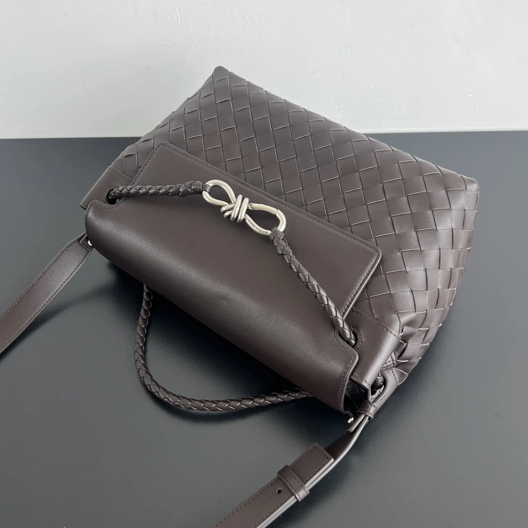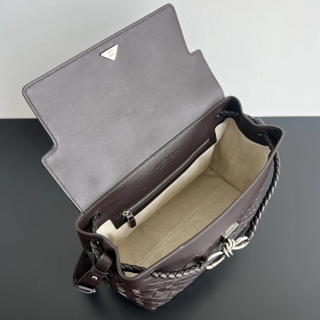 BV New Small Andiamo Crossbody Bag 815781 The small size is easy for both men and women to handle and is also friendly to petite figures. Made of Dutch Avenue calfskin, it has a soft and comfortable feel, a semi-gloss appearance, and a natural woven texture, paired with a Knot silver buckle knot, showcasing the beauty of detail in understated luxury. Spacious interior space with unbeatable practicality! Men wear it with a handsome and casual look, while women wear it with a refined and versatile style. It is not only a daily companion but also a work of art that embodies history and craftsmanship. Dimensions 29x20x13
