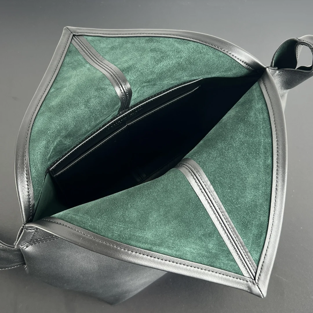 BV s new Sawyer large triangle bag 815807 If you want to double your coolness when going out, you must get this fashionable triangle bag The Sawyer full leather bag is interpreted with triangular geometric shapes, with an overall neutral style that both men and women can handle The entire bag is made of grained silky calfskin, and the interior is made of suede, which is soft and fits the body. The flap closure and shoulder strap can be adjusted by twisting. There are two open pockets inside the bag, and the capacity meets the needs of daily commuting. Wearing it immediately enhances the temperament, very neutral, very handsome, I want to recommend it to everyone Size: 25*17*12